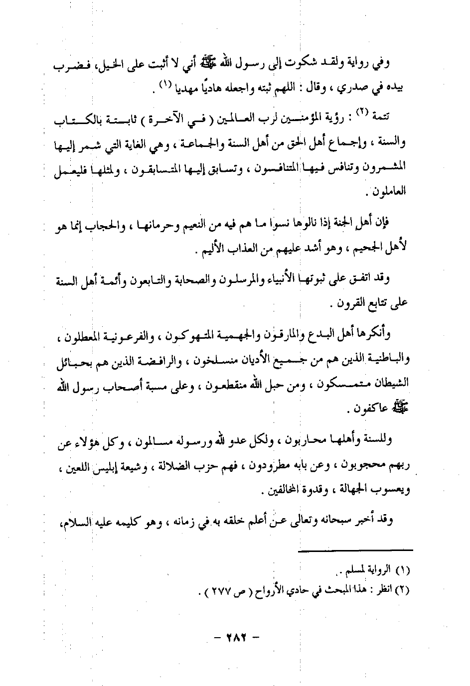تتمة (¬2): رؤية المؤمنين لرب العالمين (في الآخرة) ثابتة بالكتاب والسنة، وإجماع أهل الحق من أهل السنة والجماعة، وهى الغاية التي شمر إليها المشمرون وتنافس فيها المتنافسون، وتسابق إليها المتسابقون، ولمثلها فليعمل العاملون.