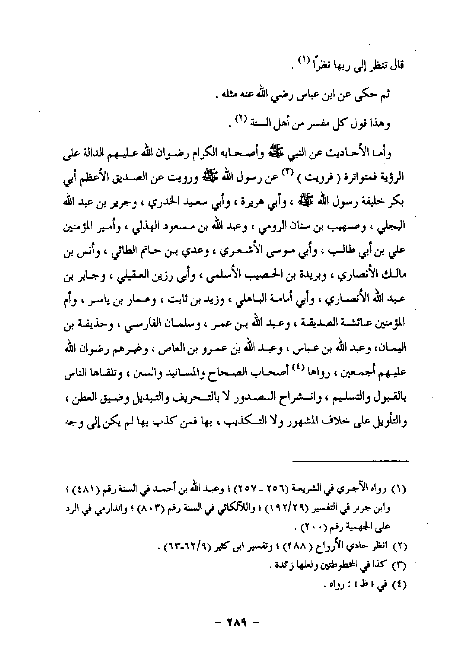 (¬1) رواه الآجري في الشريعة (256 - 257)؛ وعبد اللَّه بن أحمد في السنة رقم (481)؛ وابن جرير في التفسير (29/ 192)؛ واللآلكائي في السنة رقم (803)؛ والدارمي في الرد على الجهمية رقم (200).