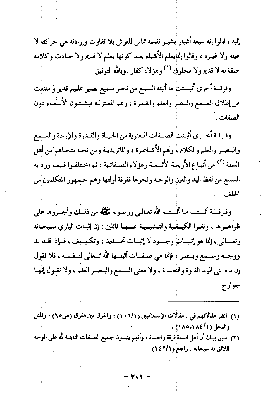 (¬2) سبق بيان أن أهل السنة فرقة واحدة، وأنهم يثبتون جميع الصفات الثابتة للَّه على الوجه اللائق به سبحانه. راجع (1/ 142).