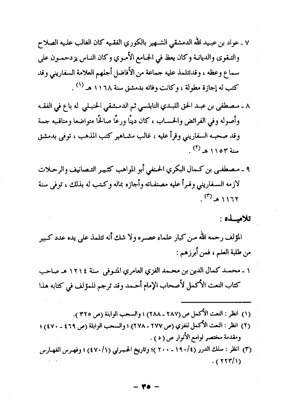 (¬2) انظر: النعت الأكمل للفزي (ص 277 - 278)؛ والسحب الوابلة (ص 469 - 470)؛ ومقدمة مختصر لوامع الأنوار ص (د).