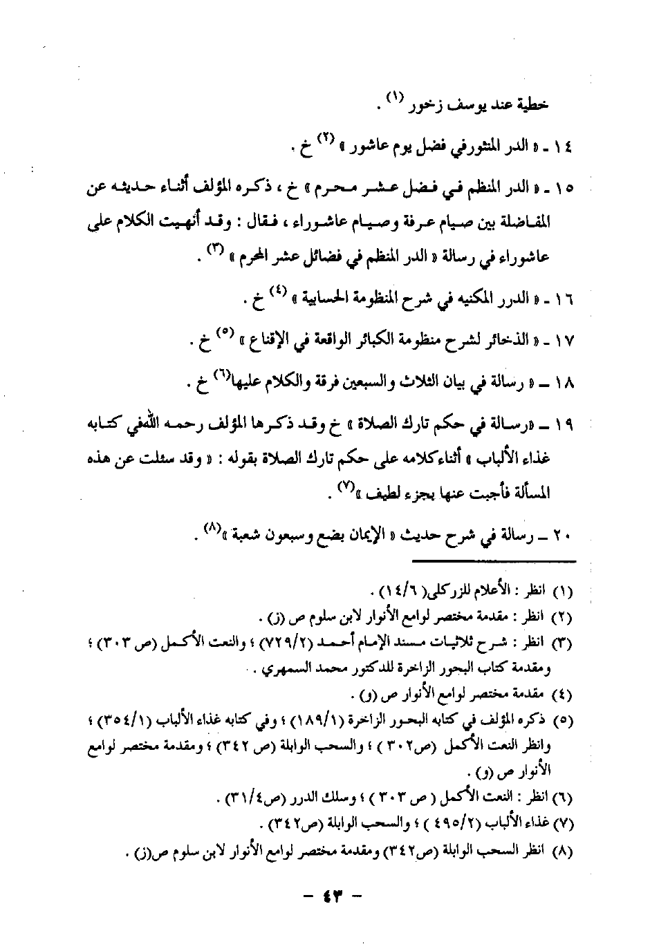 (¬5) ذكره المؤلف في كتابه البحور الزاخرة (1/ 189)؛ وفي كتابه غذاء الألباب (1/ 354)؛ وانظر النعت الأكمل (ص 302)؛ والسحب الوابلة (ص 342)؛ ومقدمة مختصر لوامع الأنوار ص (و).