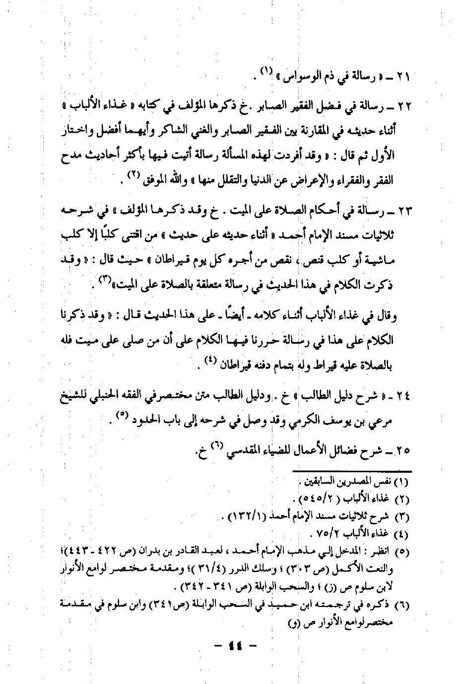 (¬5) انظر: المدخل إلي مذهب الإمام أحمد، لعبد القادر بن بدران (ص 422 - 443)؛ والنعت الأكمل (ص 303)؛ وسلك الدرر (4/ 31)؛ ومقدمة مختصر لوامع الأنوار لابن سلوم ص (ز)؛ والسحب الوابلة (ص 341 - 342).