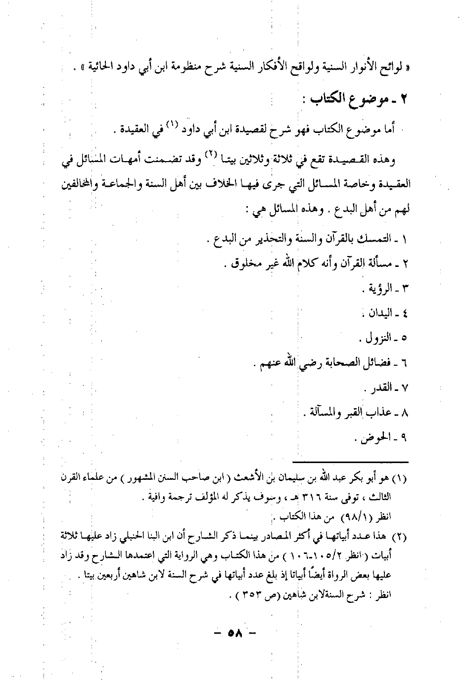 أما موضوع الكتاب فهو شرح لقصيدة ابن أبي داود (¬1) في العقيدة.