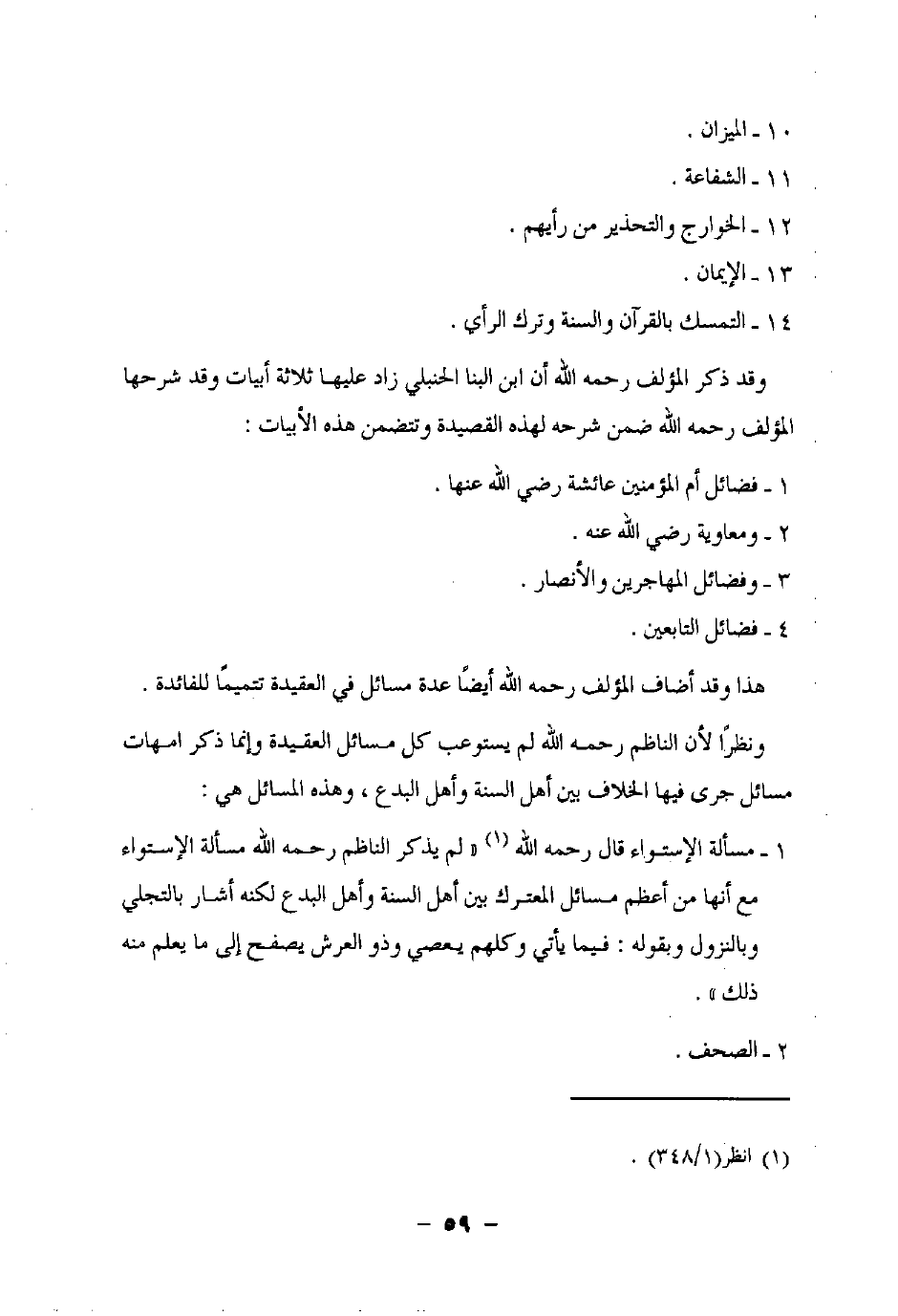ونظرًا لأن الناظم رحمه اللَّه لم يستوعب كل مسائل العقيدة وإنما ذكر امهات مسائل جرى فيها الخلاف بين أهل السنة وأهل البدع، وهذه المسائل هى: