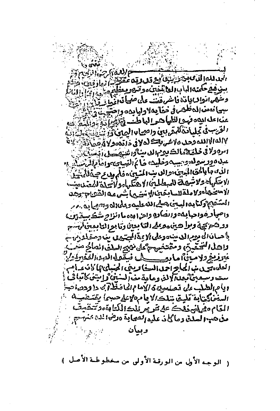 (الوجه الأول من الورقة الأولى من مخطوطة الأصل)