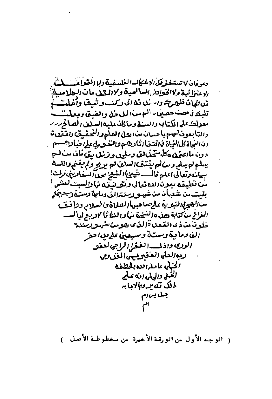 (الوجه الأول من الورقة الأخيرة من مخطوطة الأصل)