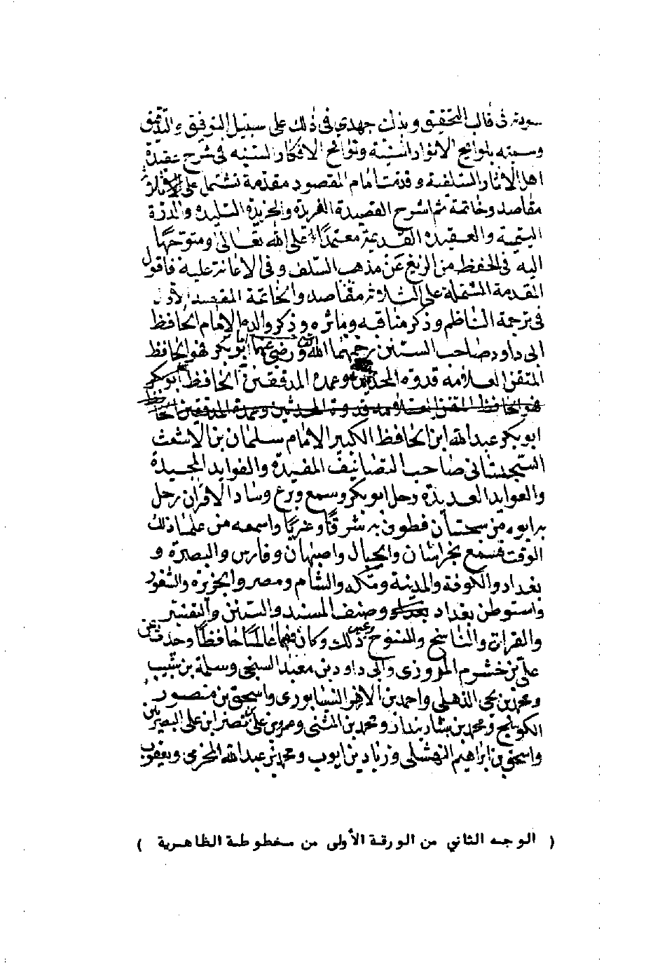 (الوجه الثاني من الورقة الأولى من مخطوطة الظاهرية)