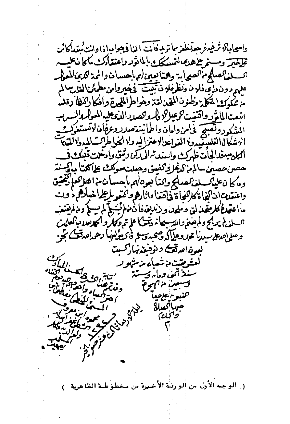 (الوجه الأول من الورقة الأخيرة من مخطوطة الظاهرية)