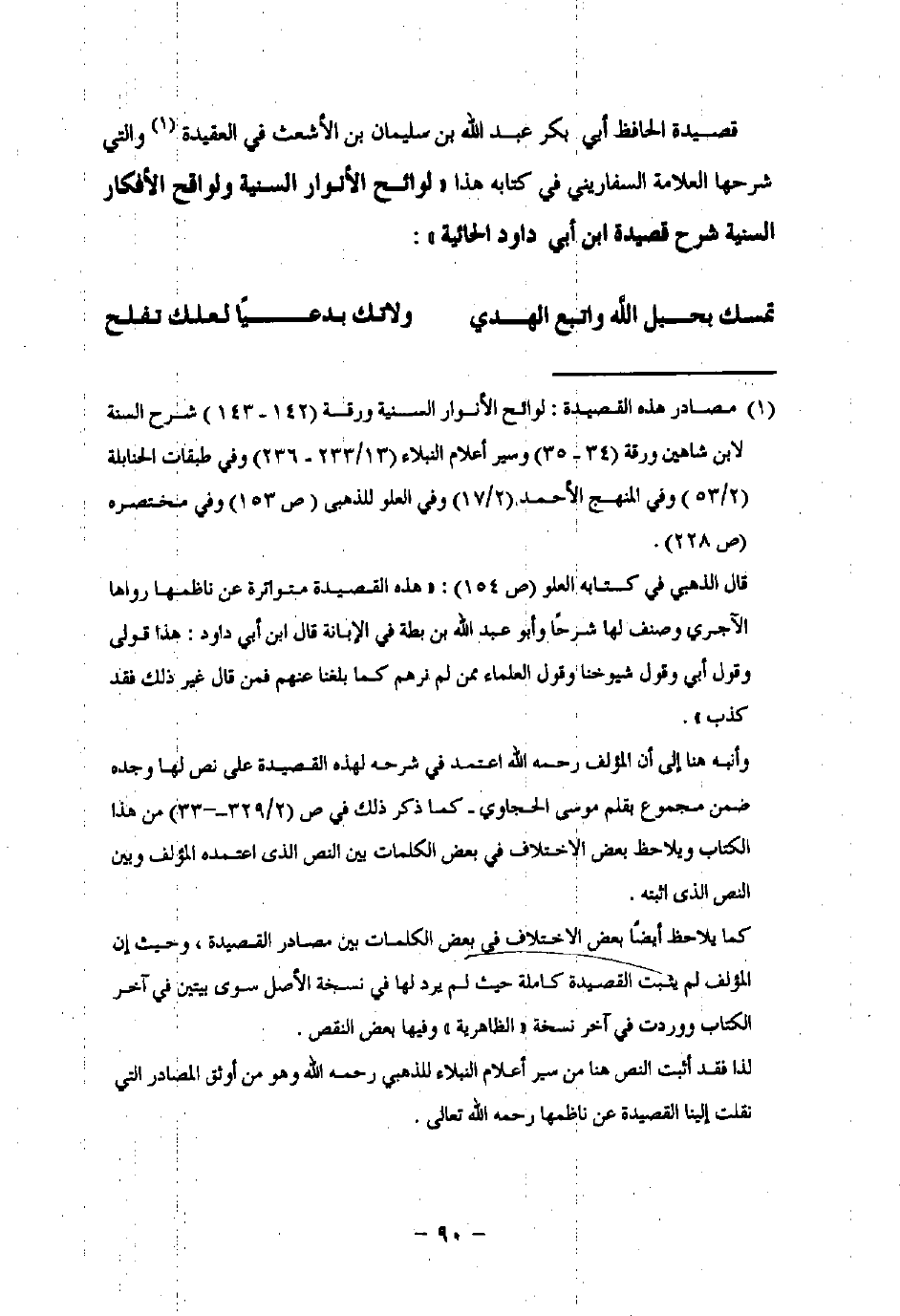 قصيدة الحافظ أبي بكر عبد اللَّه بن سلميان بن الأشعث في العقيدة (¬1) والتي شرحها العلامة السفاريني في كتابه هذا "لوائح الأنوار السنية ولواقح الأفكار السنية شرح قصيدة ابن أبي داود الحائية":