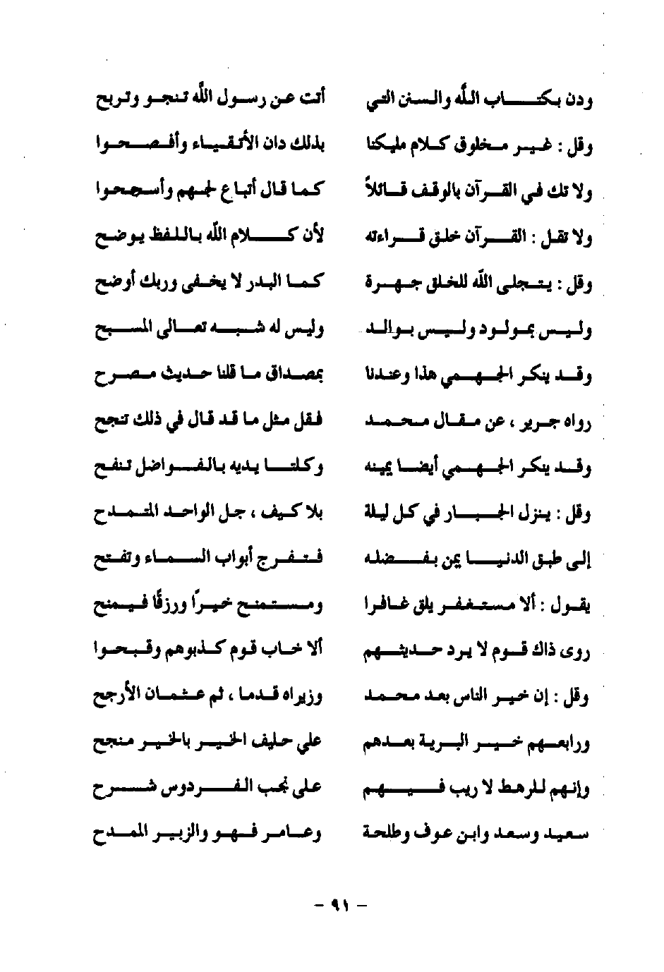 وقل: غير مخلوق كلام مليكنا ... بذلك دان الأتقياء وأفصحوا