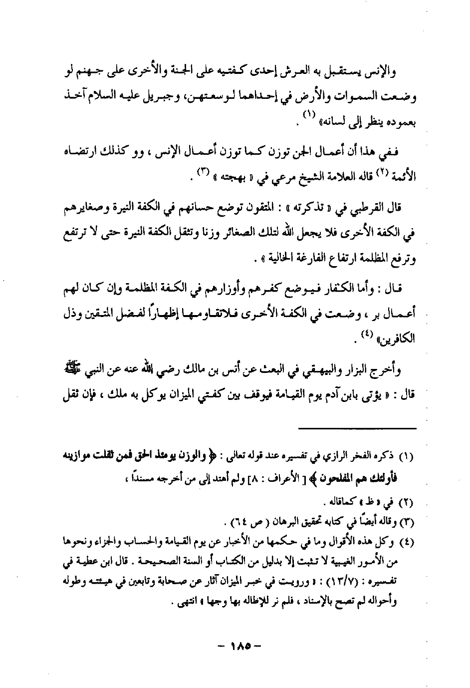 ففي هذا أن أعمال الجن توزن كما توزن أعمال الإنس، وكذلك ارتضاه الأئمة (¬2) قاله العلامة الشيخ مرعي في "بهجته" (¬3).