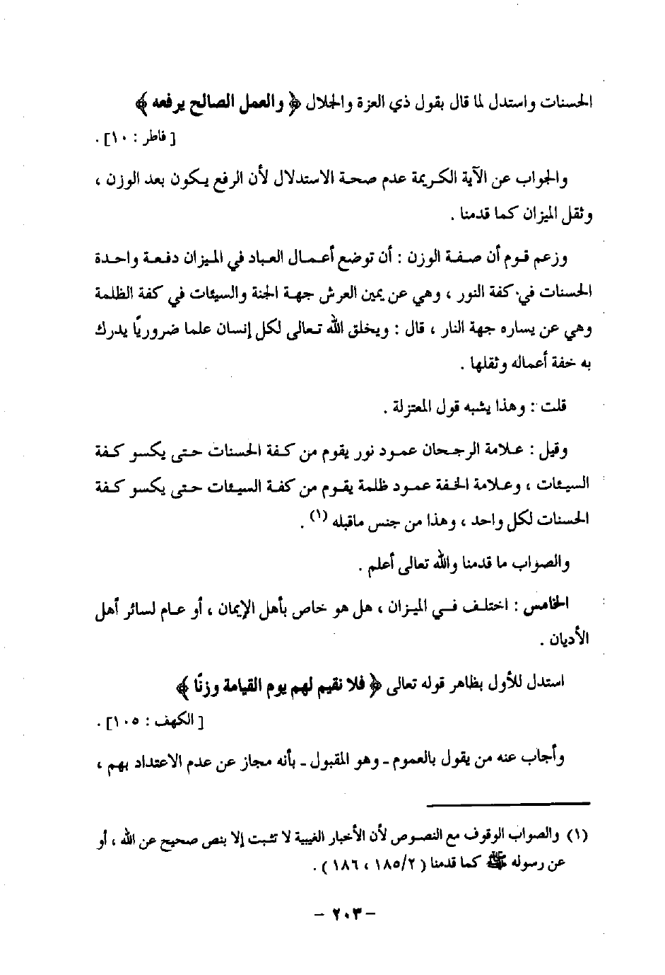 والجواب عن الآية الكريمة عدم صحة الاستدلال لأن الرفع يكون بعد الوزن، وثقل الميزان كما قدمنا.