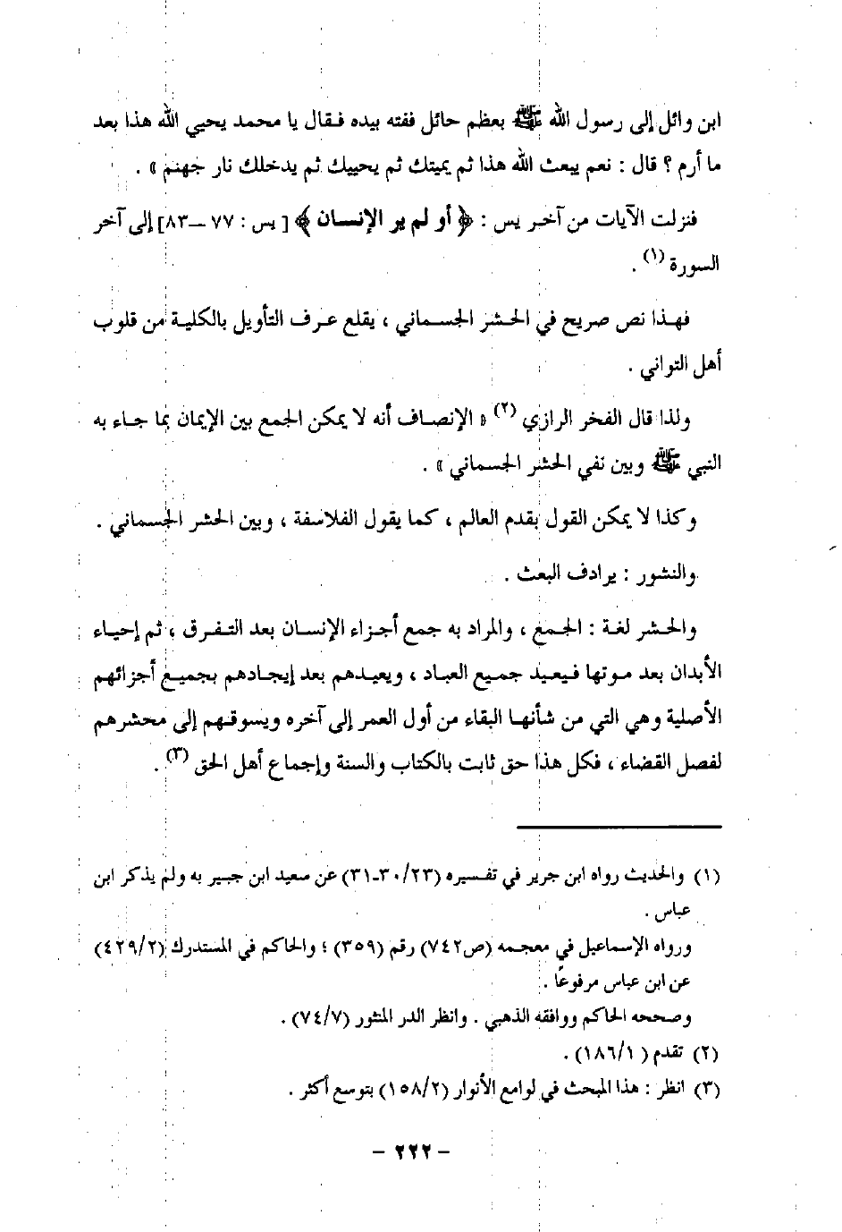 ولذا قال الفخر الرازي (¬2) "الإنصاف أنه لا يمكن الجمع بين الإيمان بما جاء به النبي -صلى اللَّه عليه وسلم- وبين نفي الحشر الجسماني".