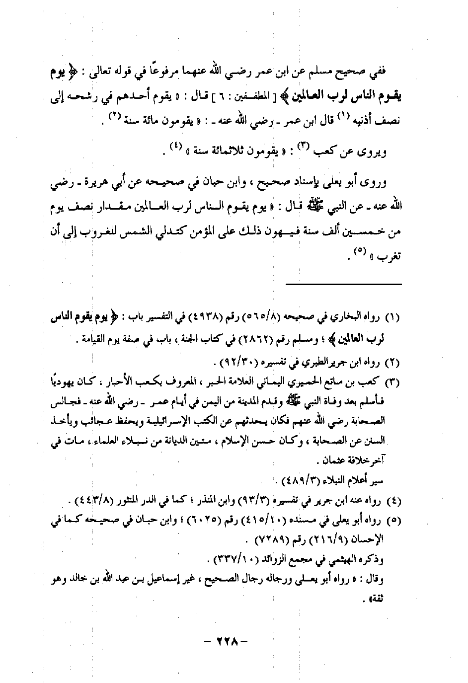 (¬1) رواه البخاري في صحيحه (8/ 565) رقم (4938) في التفسير باب: {يَوْمَ يَقُومُ النَّاسُ لِرَبِّ الْعَالَمِينَ}؛ ومسلم رقم (2862) في كتاب الجنة، باب في صفة يوم القيامة.