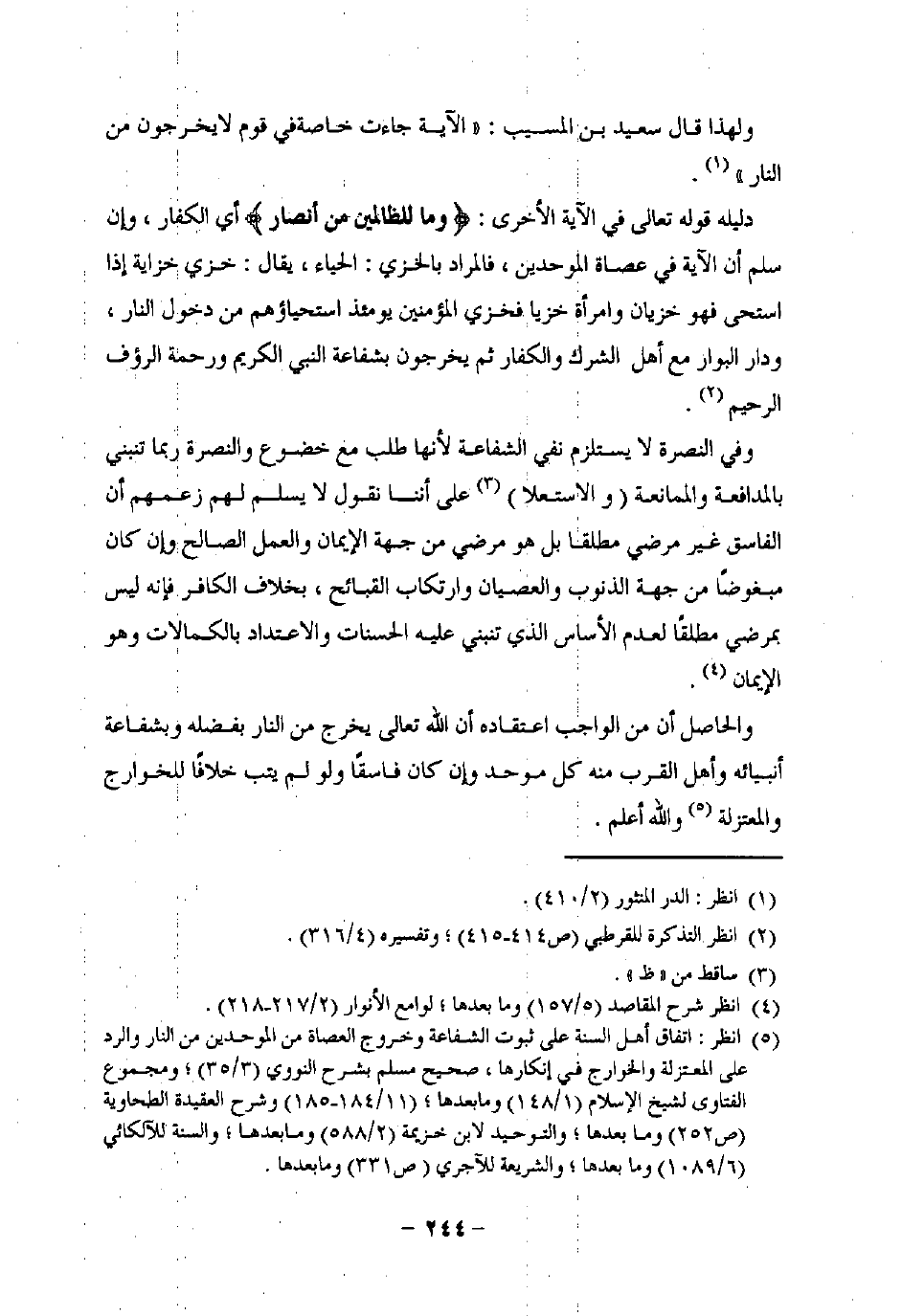 (¬5) انظر: اتفاق أهل السنة على ثبوت الشفاعة وخروج العصاة من الموحدين من النار والرد على المعتزلة والخوارج في إنكارها، صحيح مسلم بشرح النووي (3/ 35)؛ ومجموع الفتاوى لشيخ الإسلام (1/ 148) وما بعدها؛ (11/ 184 - 185) وشرح العقيدة الطحاوية (ص 252) وما بعدها؛ والوحيد لابن خزيمة (2/ 588) وما بعدها، والسنة للآلكائي (6/ 1089) وما بعدها؛ والشريعة للآجري (ص 331) وما بعدها.