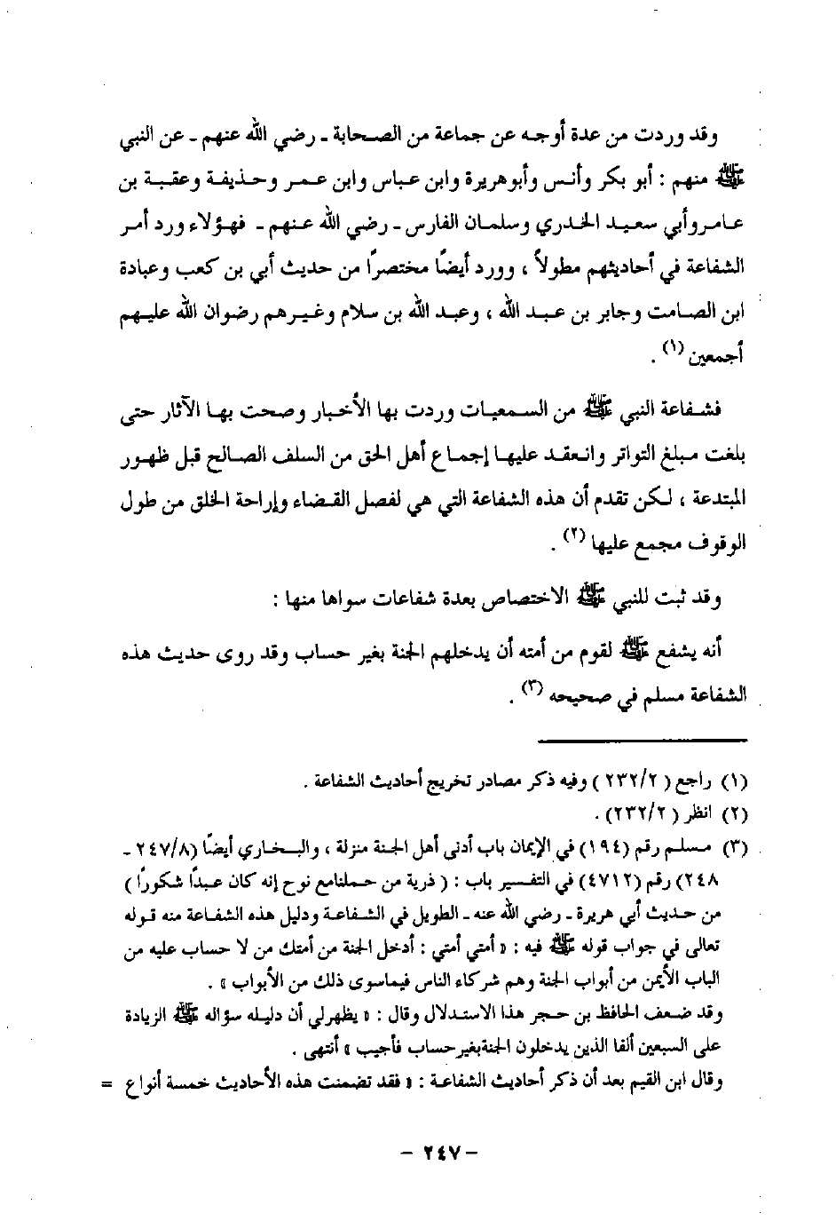 (¬1) راجع (2/ 232) وفيه ذكر مصادر تخريج أحاديث الشفاعة.
