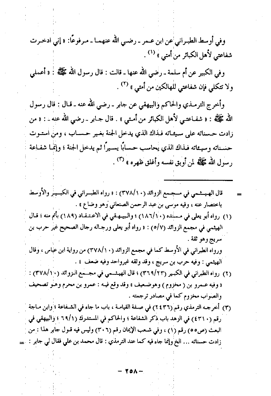 (¬3) أخرجه الترمذي رقم (2436) في صفة القيامة، باب ما جاء في الشفاعة؛ وابن ماجة رقم (4310) في الزهد باب ذكر الشفاعة؛ والحاكم في المستدرك (1/ 69)؛ والبيهقي في البعث (ص 55) رقم (1)؛ وفي شعب الإيمان رقم (306) وليس فيه قول جابر هذا: من زادت حسناته. . . إلخ وإنما جاء فيه كما عند الترمذي: قال محمد بن علي فقال لي جابر: =