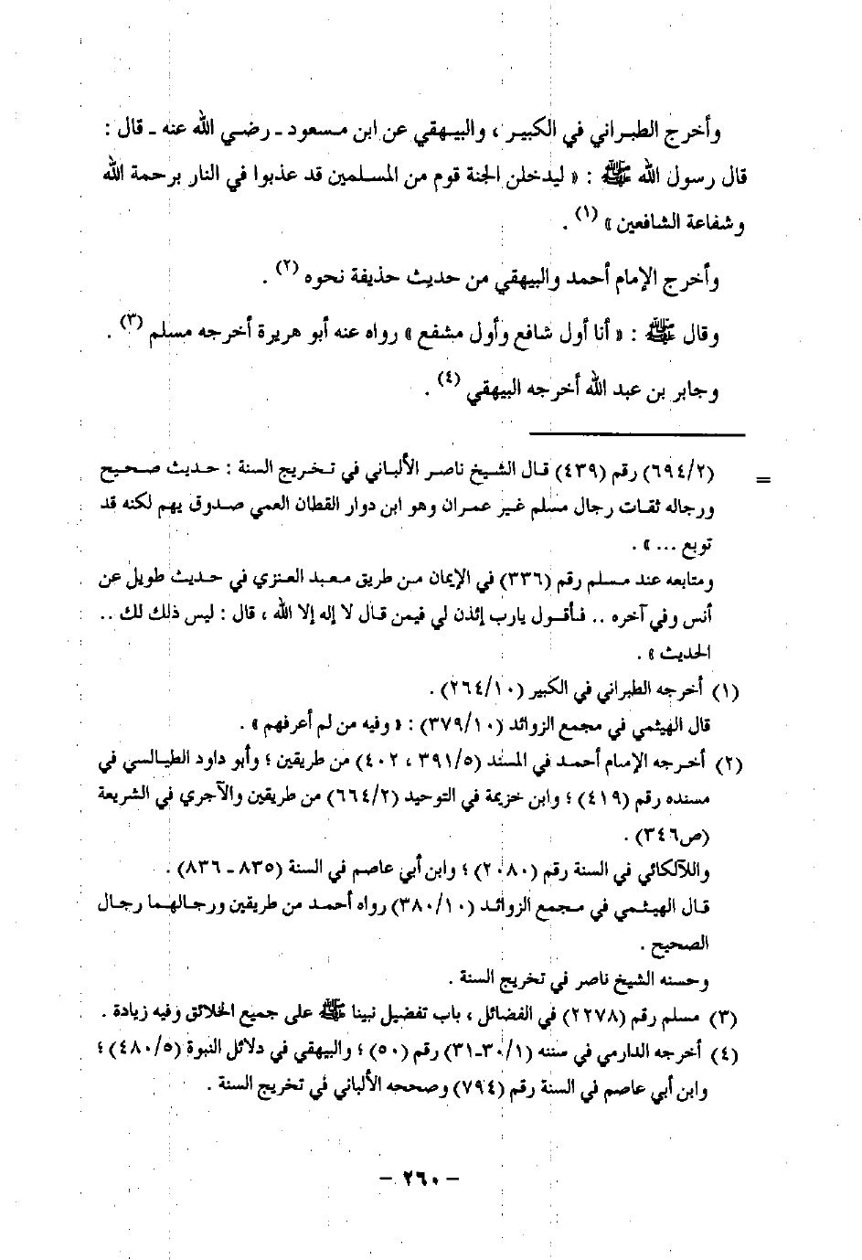= (2/ 694) رقم (439) قال الشيخ ناصر الألباني في تخريج السنة: حديث صحيح ورجاله ثقات رجال مسلم غير عمران وهو ابن دوار القطان العمي صدوق يهم لكنه قد توبع. . . ".