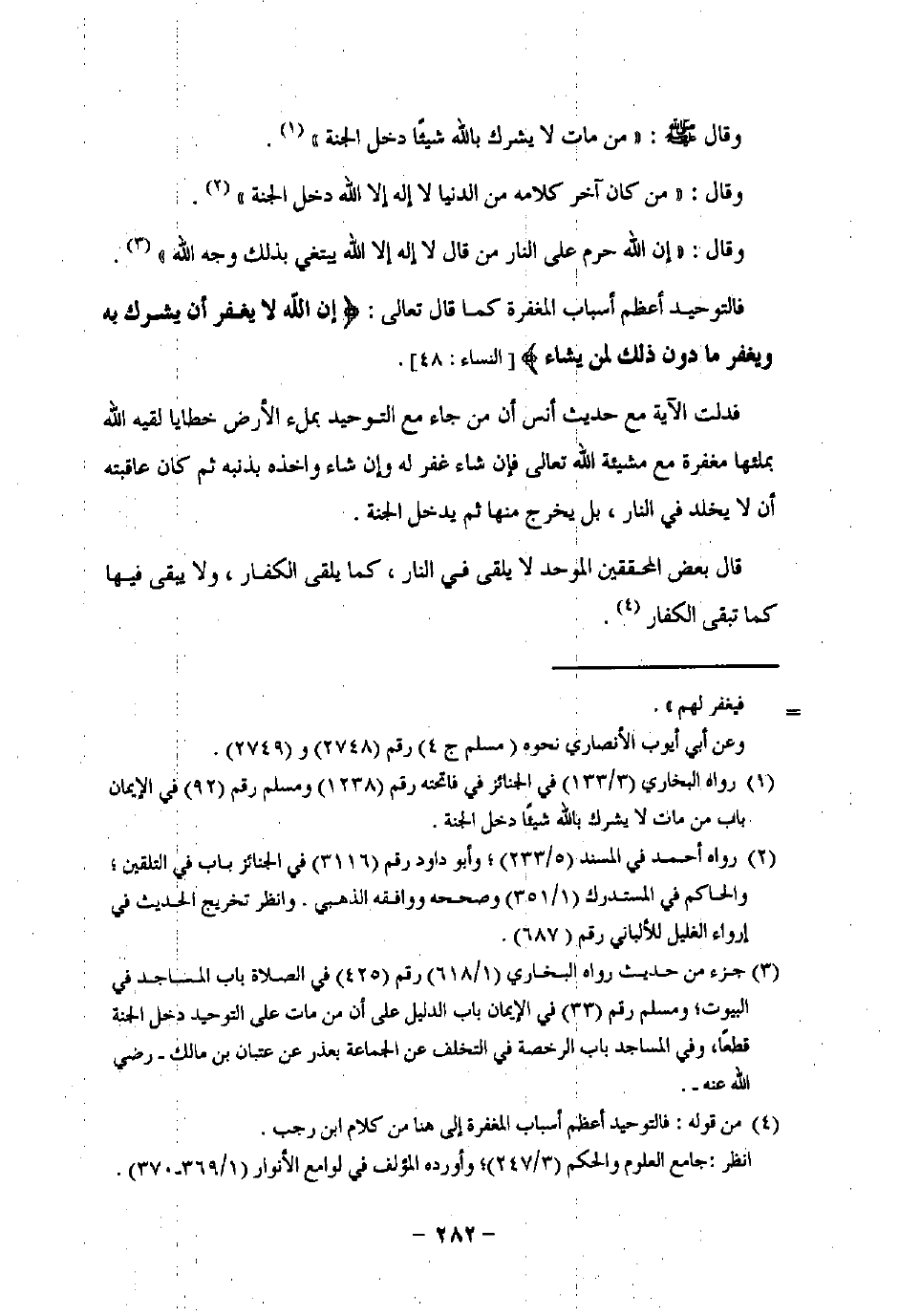 (¬4) من قوله: فالتوحيد أعظم أسباب المغفرة إلى هنا من كلام ابن رجب.