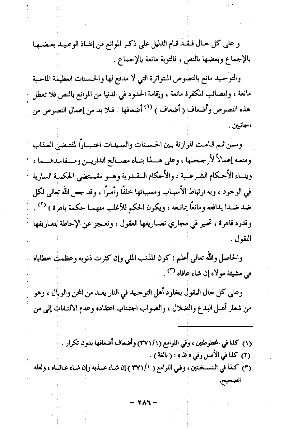 والحاصل واللَّه تعالى أعلم: كون المذنب الملي وإن كثرت ذنوبه وعظمت خطاياه في مشيئة مولاه إن شاء عافاه (¬3).