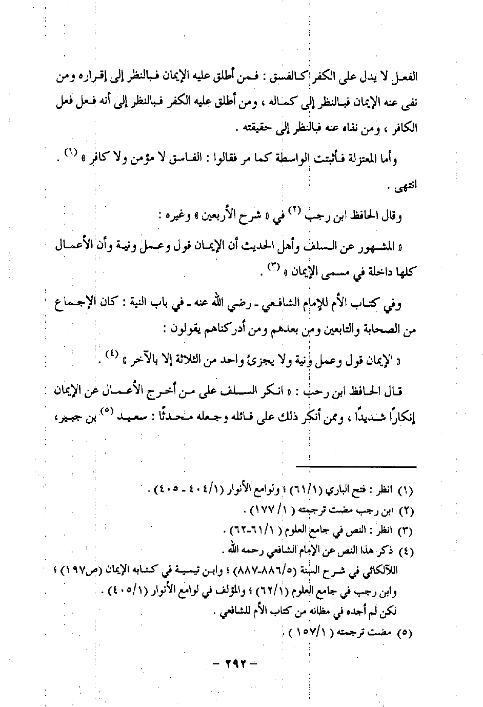 قال الحافظ ابن رجب: "انكر السلف على من أخرج الأعمال عن الإيمان إنكارًا شديدًا، وممن أنكر ذلك على قائله وجعله محدثًا: سعيد (¬5) بن جبير،