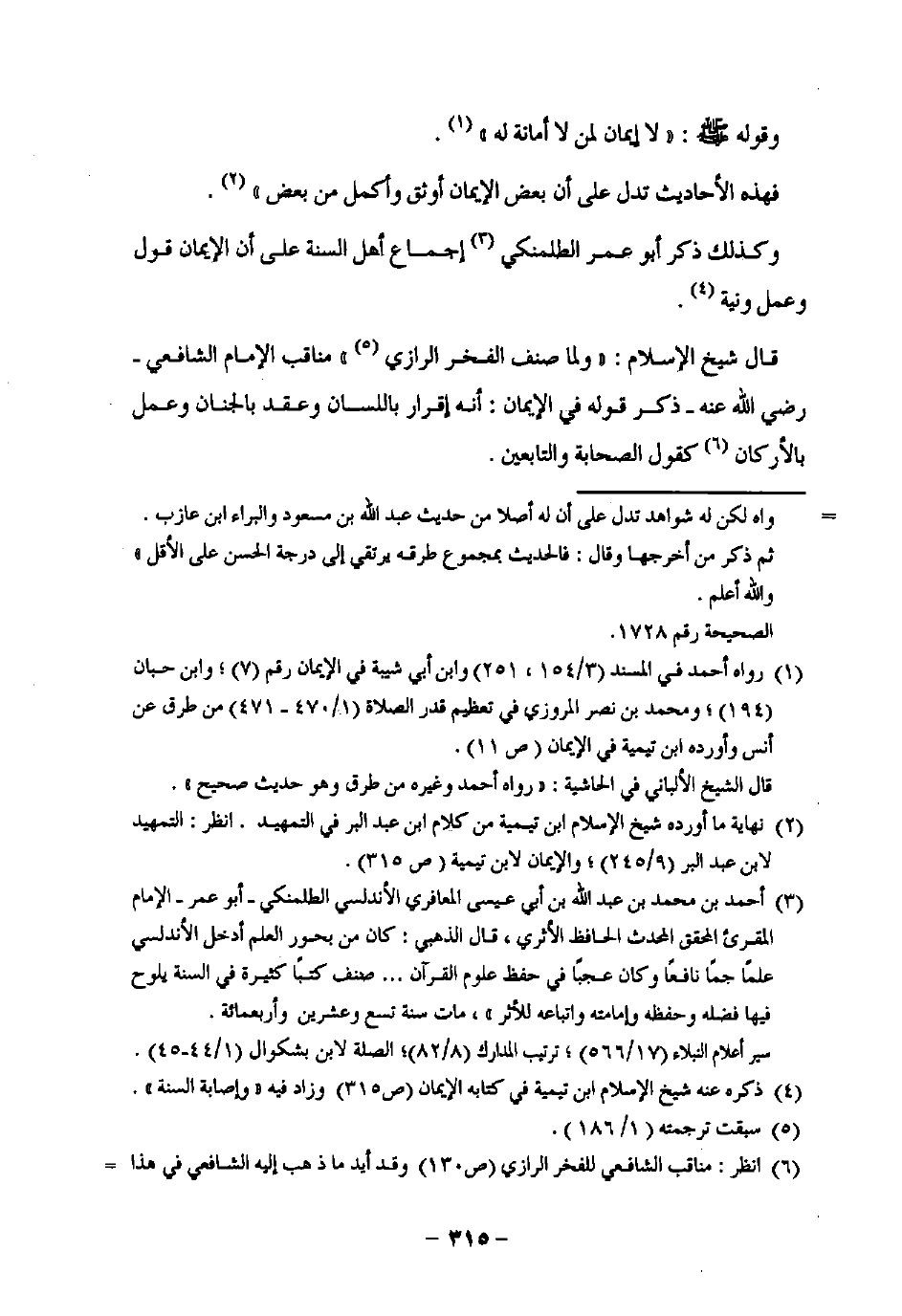 (¬2) نهاية ما أورده شيخ الإسلام ابن تيمية من كلام ابن عبد البر في التمهيد. انظر: التمهيد لابن عبد البر (9/ 245)؛ والإيمان لابن تيمية (ص 315).