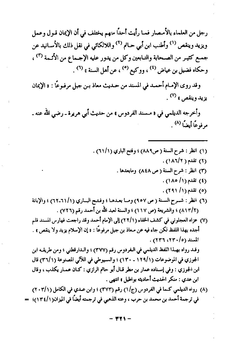 (¬6) انظر: شرح السنة (ص 957) وما بعدها؛ وفتح الباري (1/ 61 - 62)؛ والإبانة (2/ 813)؛ والشريعة (ص 117)؛ والسنة لعبد اللَّه بن أحمد رقم (726).