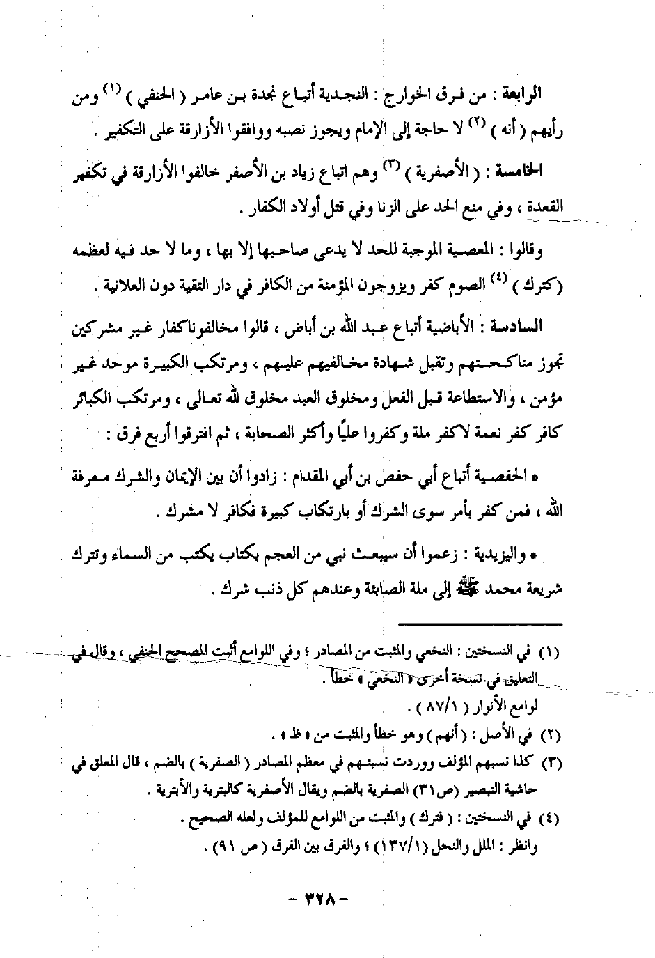 (¬3) كذا نسبهم المؤلف ووردت نسبتهم في معظم المصادر (الصفرية) بالضم، قال المعلق في حاشية التبصير (ص 31) الصفرية بالضم ويقال الأصفرية كالبترية والأبترية.