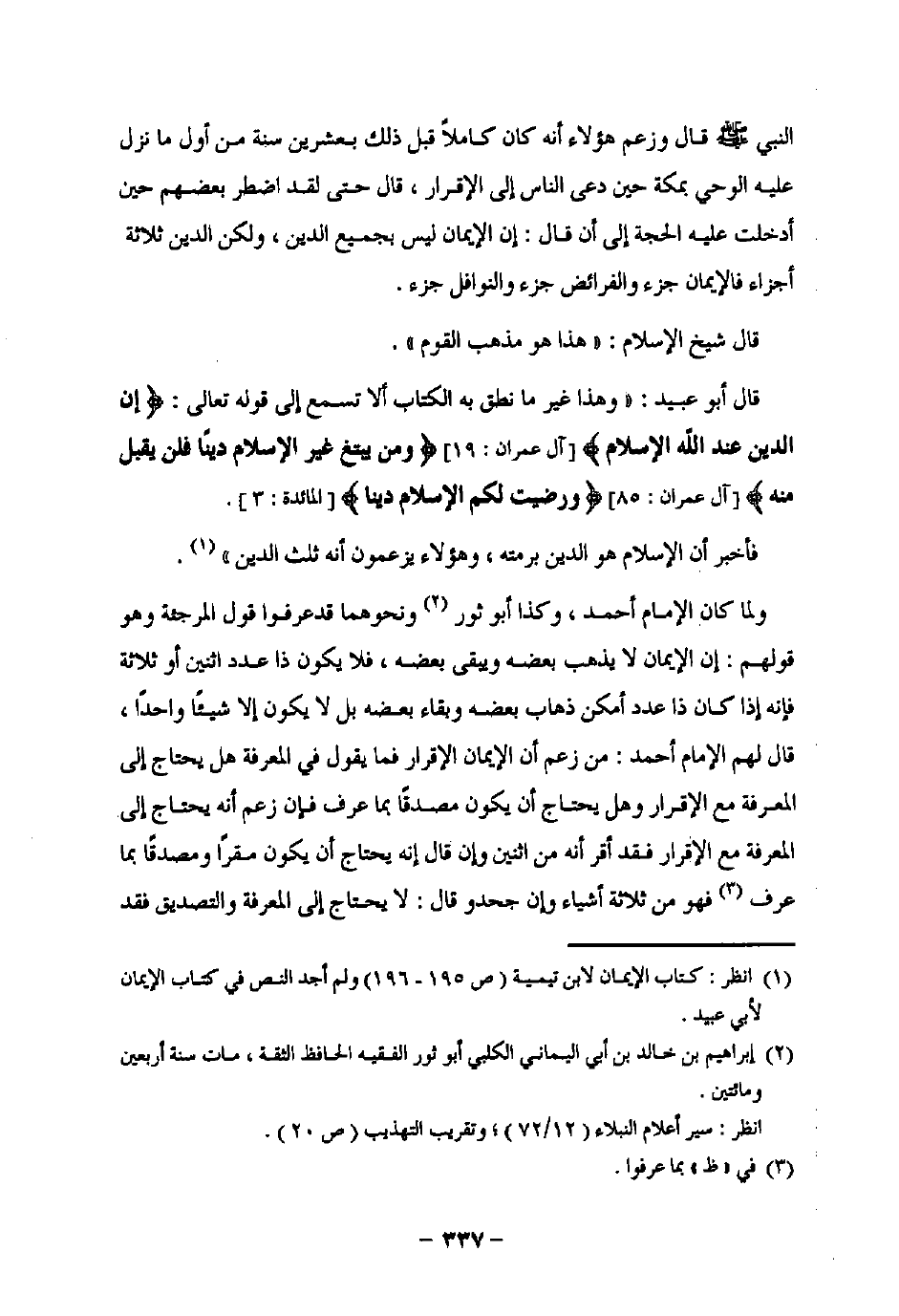 (¬1) انظر: كتاب الإيمان لابن تيمية (ص 195 - 196) ولم أجد النص في كتاب الإيمان لأبي عبيد.
