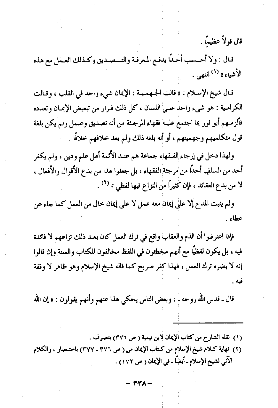 (¬2) نهاية كلام شيخ الإسلام من كتاب الإيمان من (ص 376 - 377) باختصار، والكلام الآتي لشيخ الإسلام -أيضًا- في الإيمان (ص 172).