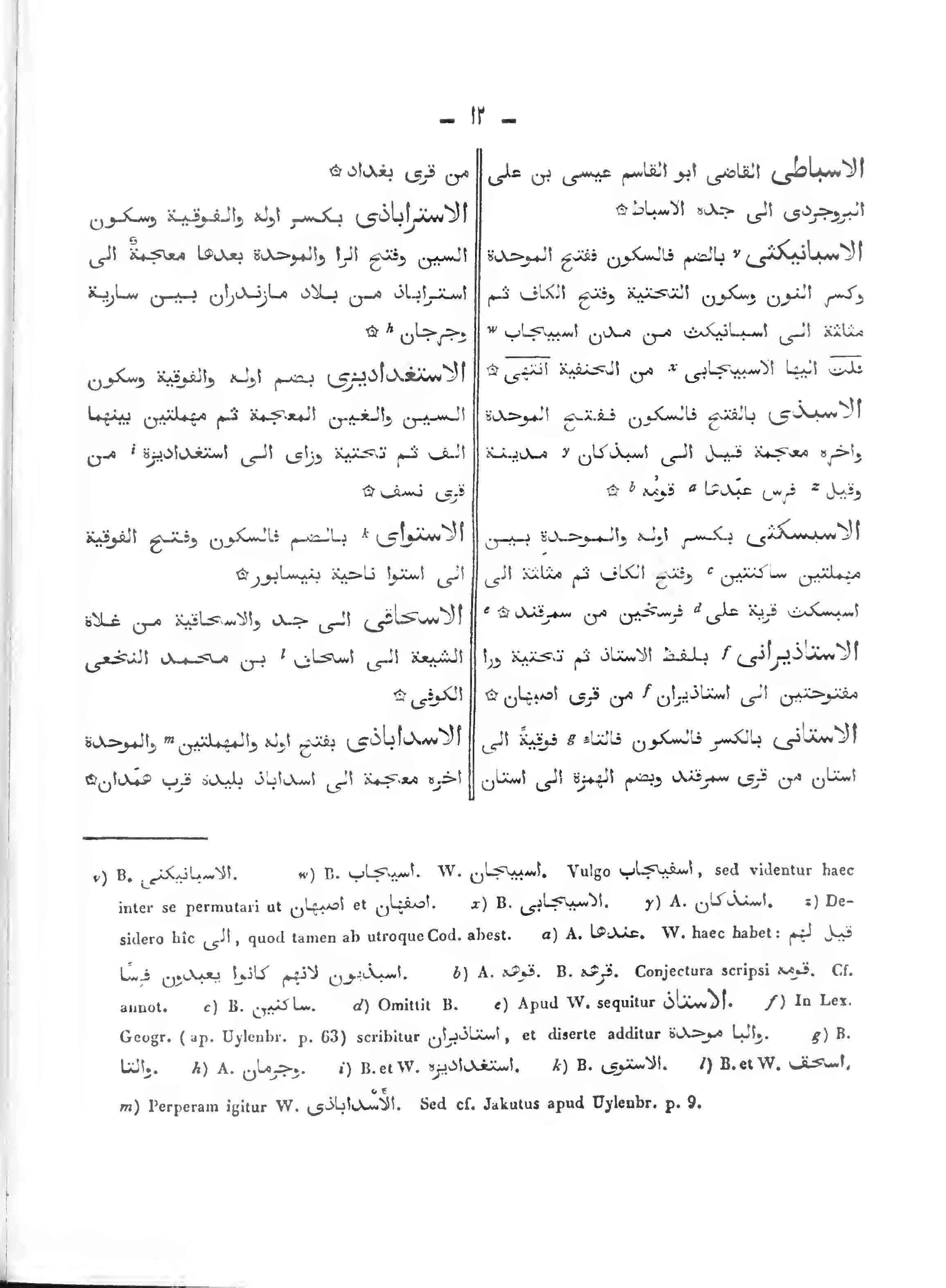 الإستراباذي: بكسر أوله والفوقية وسكون السن وفتح الراء والموحدة بعدها معجمة إلى إستراباذ من بلاد مازندران بين سارية وجرجان.