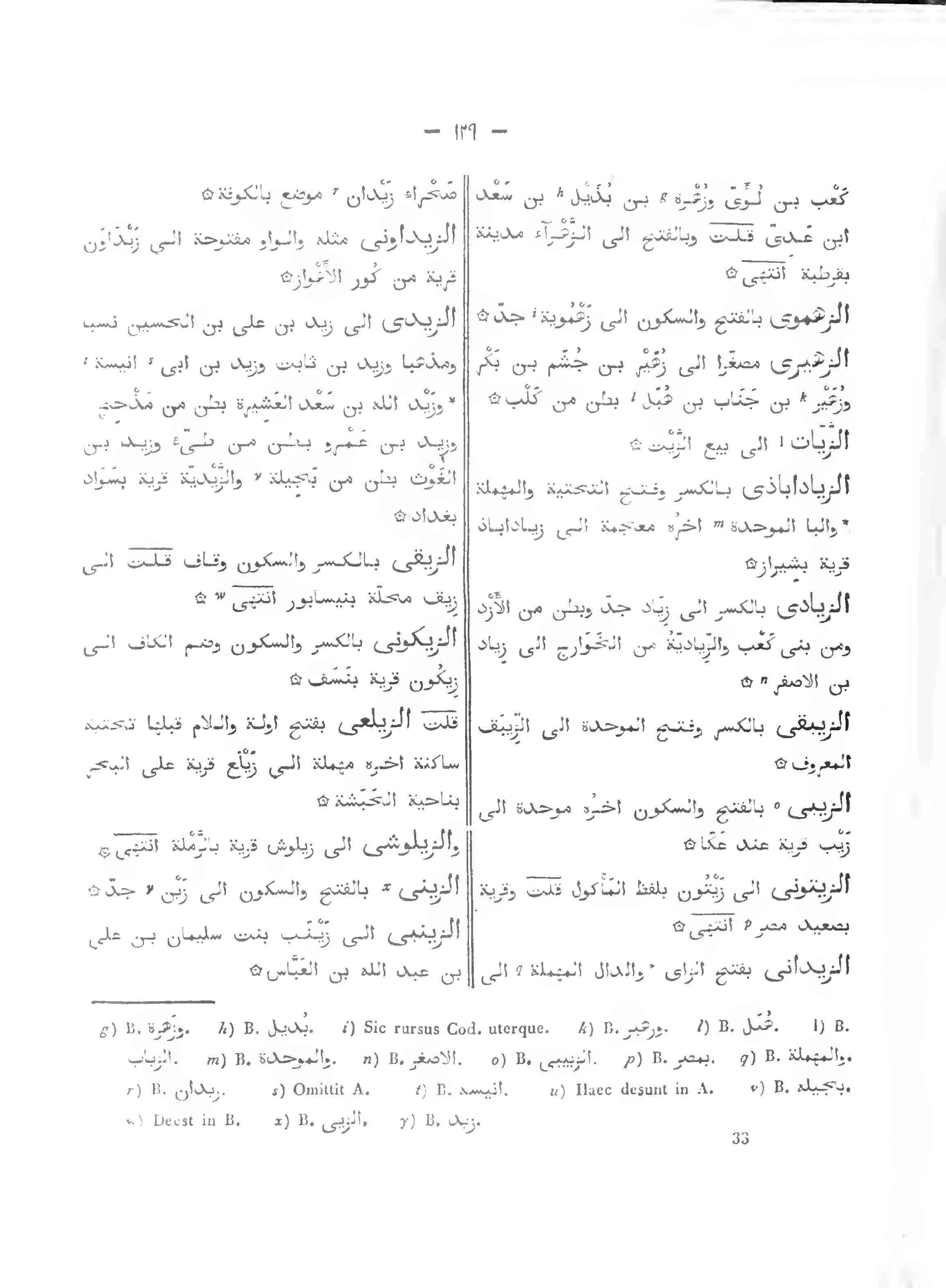 الزيدي: إلى زيد بن علي بن الحسين نسباً ومذهباً وزيد بن ثابت وزيد بن أبي أنيسة وزيد الله بن سعد العشيرة بطن من مذحج وزيد بن عمرو بطن من طيىء وزيد بن الغوث بطن من بجيلة والزّيديّة قرية بسواد بغداد.