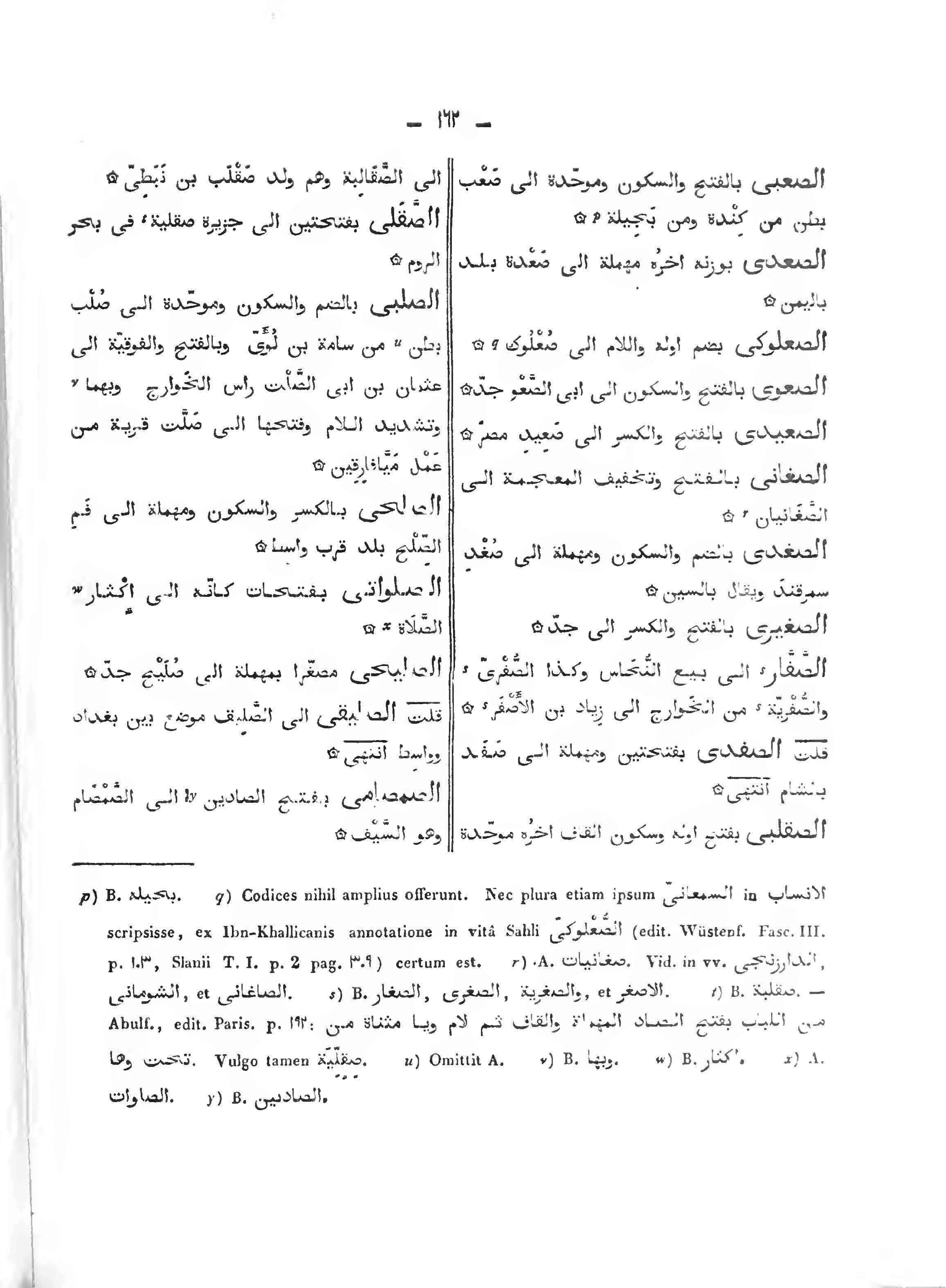 الصلبي: بالضم والسكون وموحدة إلى صلب بطن من سامة بن لؤي وبالفتح والفوقية إلى عثمان بن أبي الصلت رأس الخوارج وبهما وتشديد اللام وفتحها إلى صلت قرية من عمل ميافارقين.