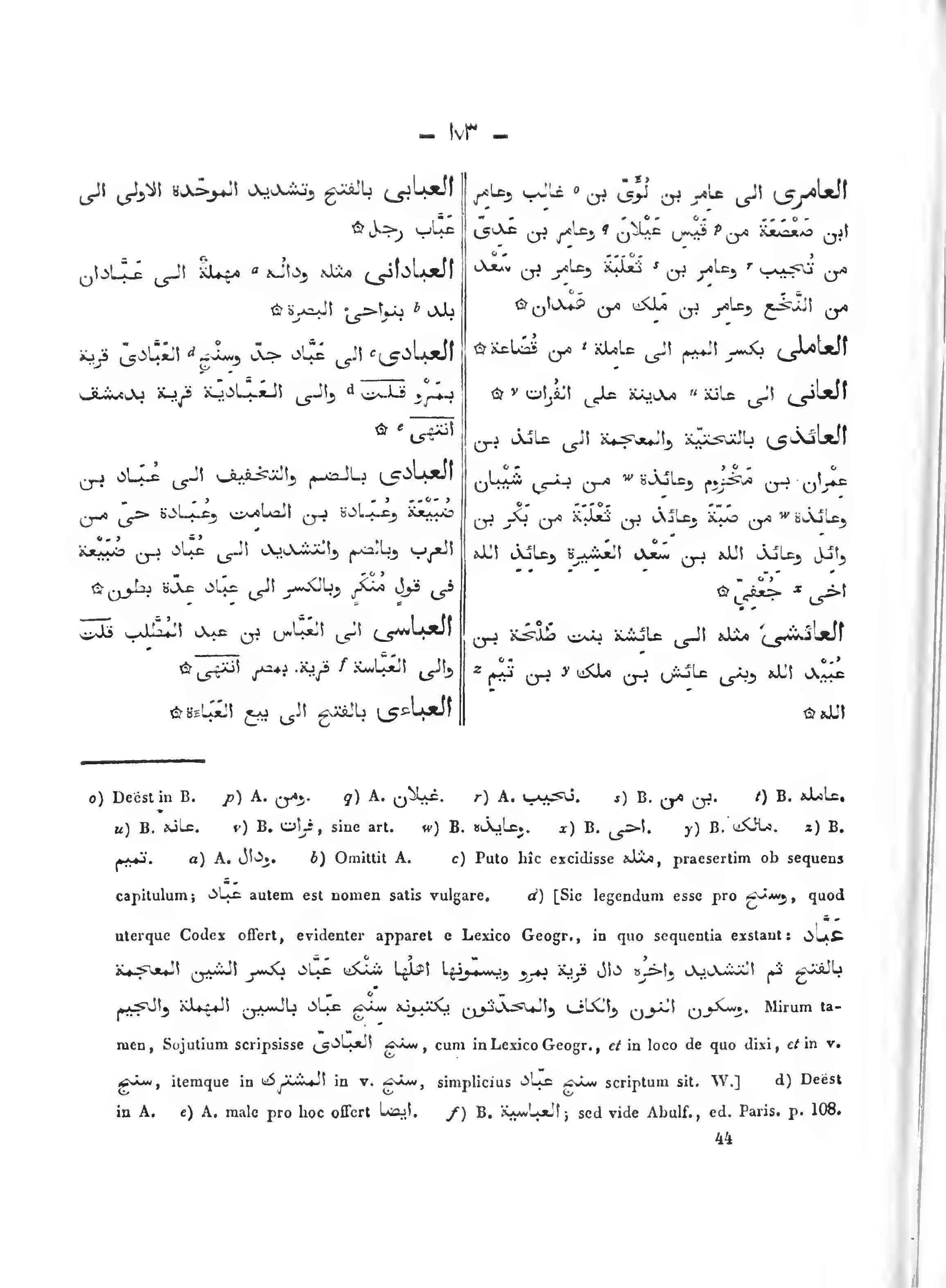 العبادي: بالضم والتخفيف إلى عباد بن ضبيعة وعبادة بن الصامت وعبادة حي من العرب وبالضم والتشديد إلى عباد بن ضبيعة في قولٍ منكرٍ وبالكسر إلى عباد عدة بطون.
