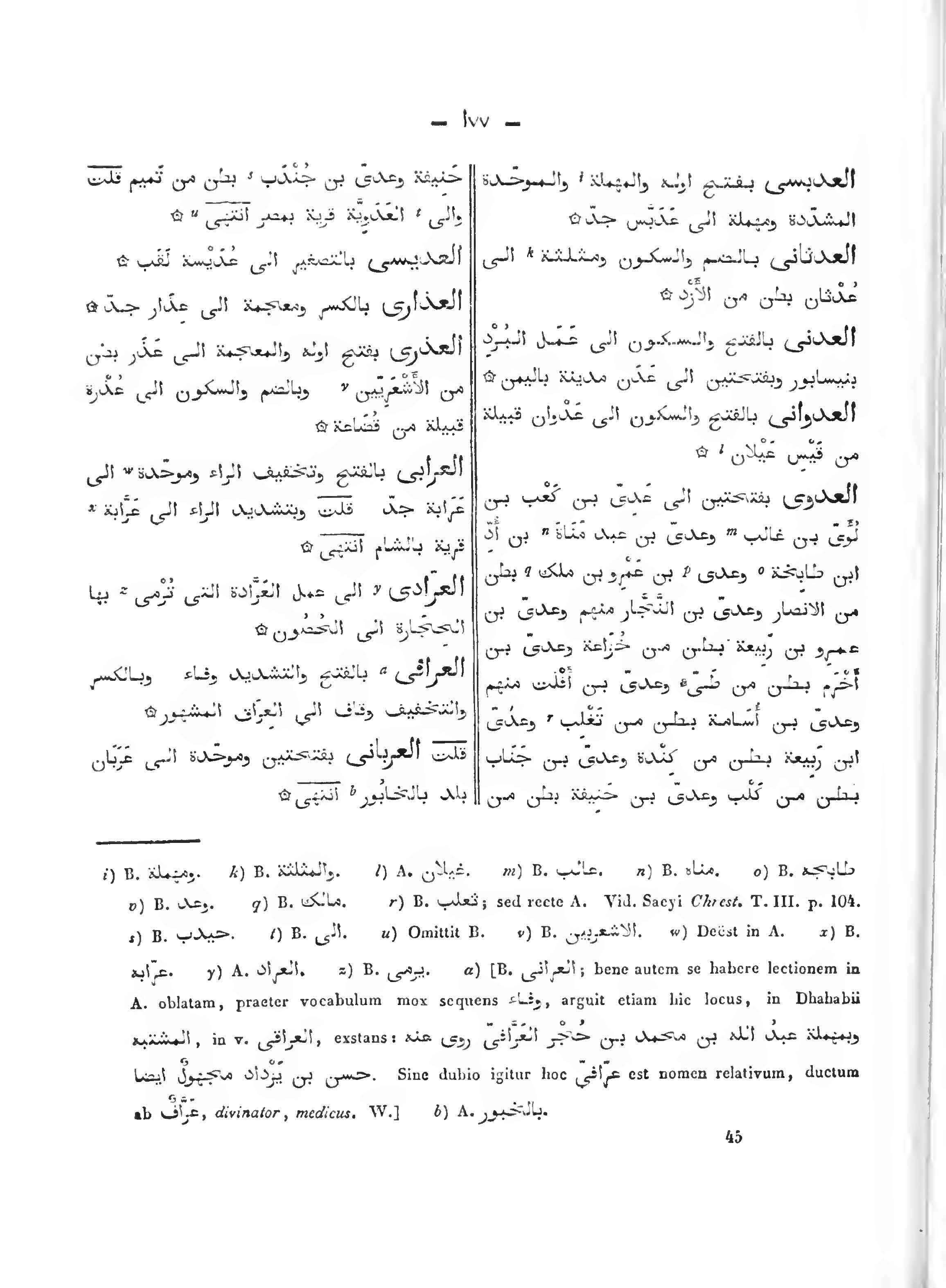العدوي: بفتحتين إلى عدي بن كعب بن لؤي بن غالب وعدي بن عبد مناة بن أد بن طابخة وعدي بن عمرو بن ملك بطن من الأنصار وعدي بن النجار منهم وعدي بن عمرو بن ربيعة بطن من خزاعة وعدي بن أخرم بطن من طيء وعدي بن أفلت منهم وعدي بن أسامة بطن من تغلب وعدي بن ربيعة بطن من كندة وعدي بن جناب بطن من كلب وعدي بن حنيفة وعدي بن جندب بطن من تميم قلت: وإلى العدوية قرية بمصر انتهى.