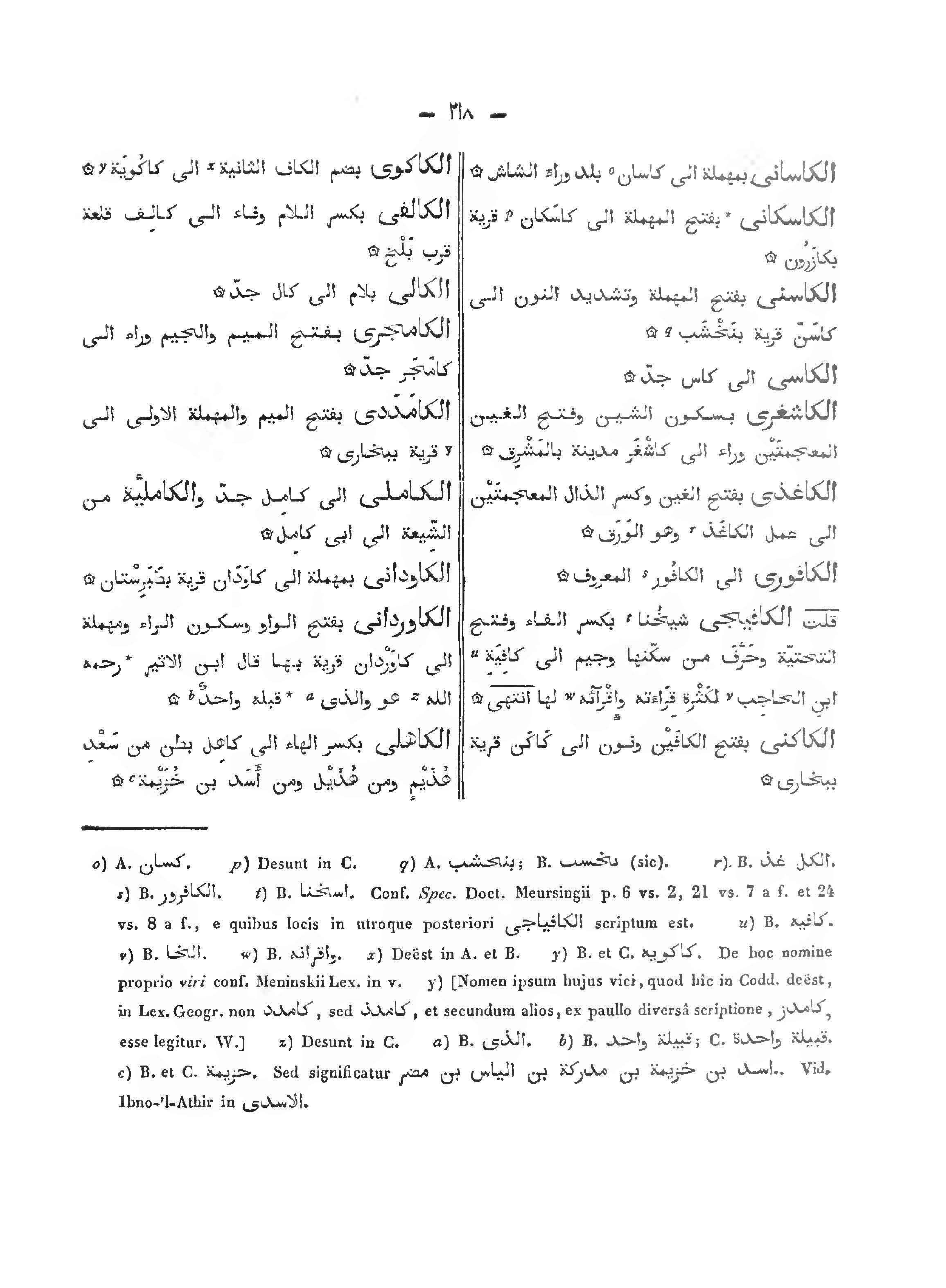 الكاسني: بقتح المهملة وتشديد النون إلى كاسن قرية بنخشب.