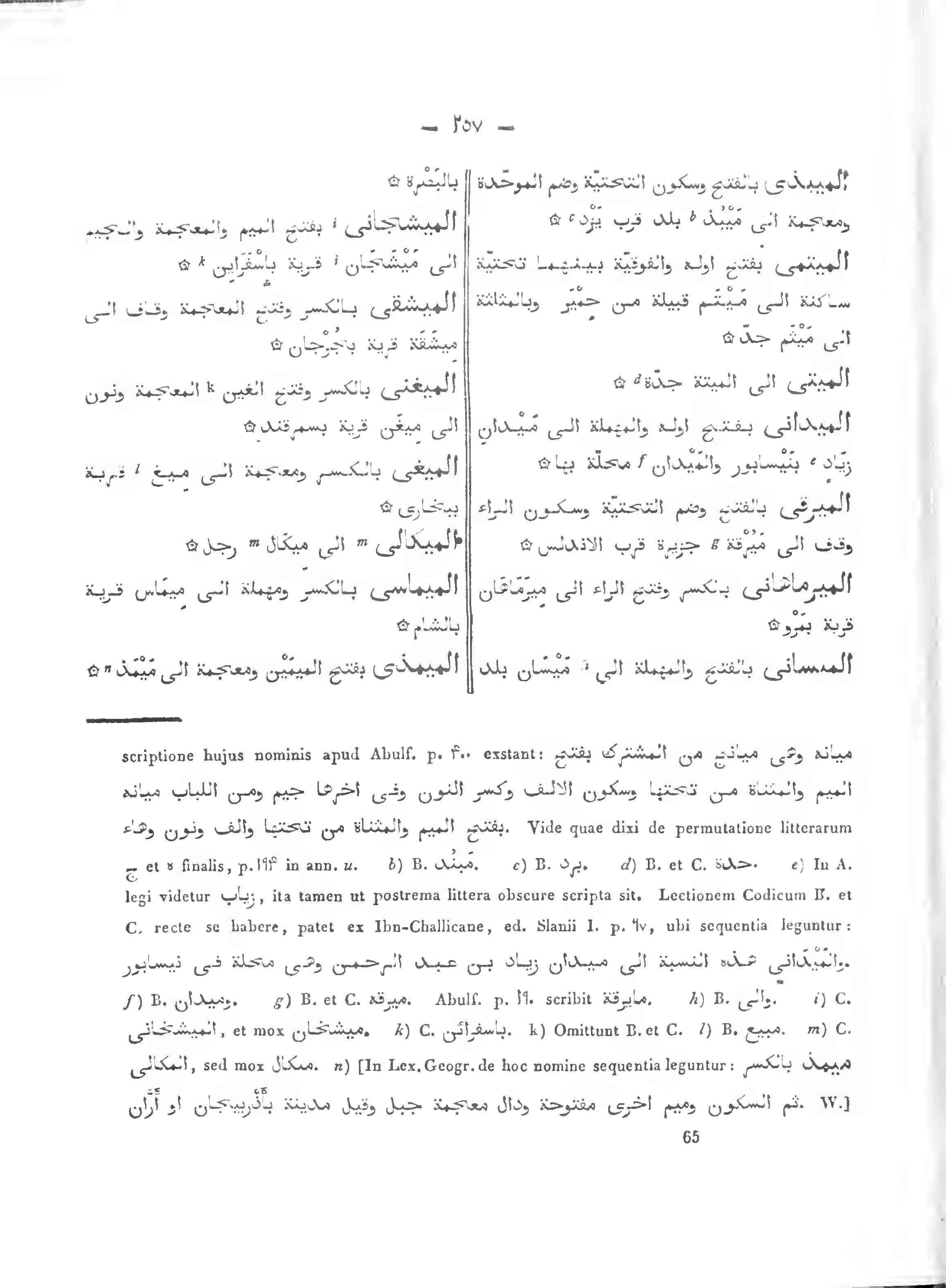 الميرقي: بالفتح وضم التحتية وسكون الراء وقاف إلى ميرقة جزيرة الأندلس الميرهاني: بالكسر وفتح الراء إلى ميرماهان قرية بمرو الميساني: بالفتح والمهملة إلى ميسان الميشجاني: بفتح الميم والمعجمة والجيم إلى ميشجان قرية باسفراين بلدة بالبصرة.