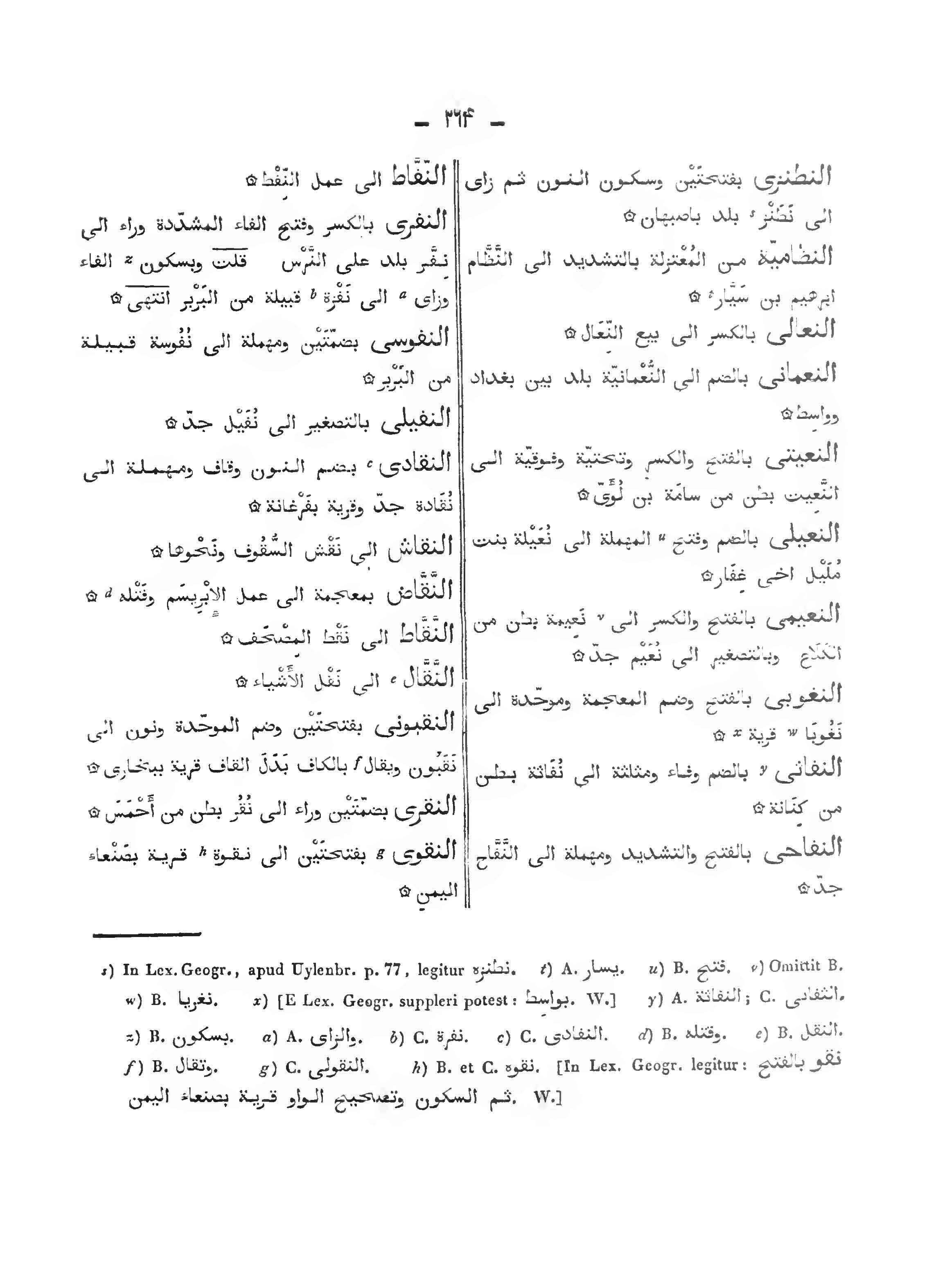 النفري: بالكسر وفتح الفاء المشددة وراء إلى نفر بلد على النرس قلت: وبسكون الفاء وزاي إلى نفرة قبيلة من البربر انتهى.