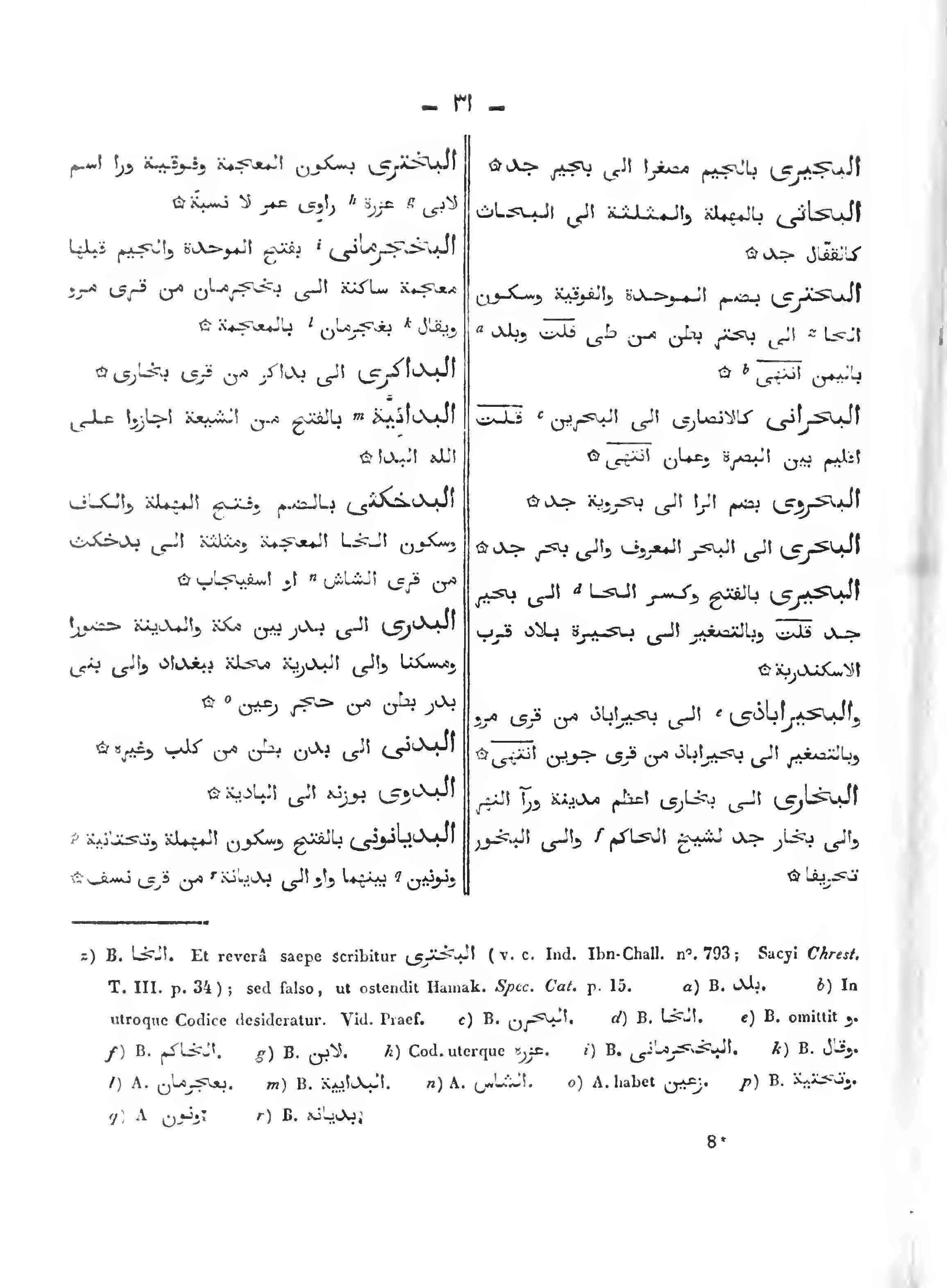 البخاري: إلى بخارى أعظم مدينة وراء النهر وإلى بخار جد لشيخ الحاكم وإلى البخور تحريفا.