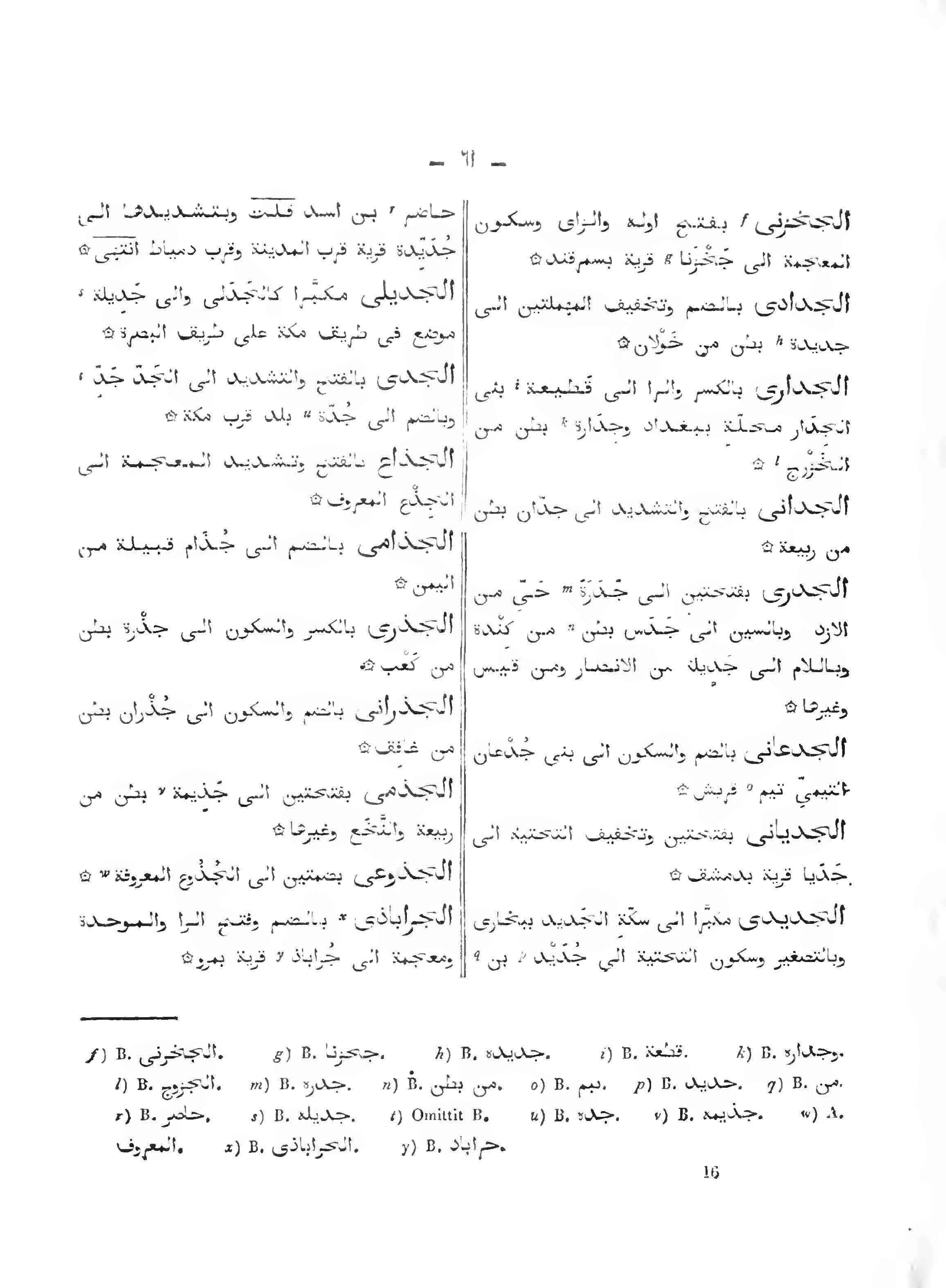 الجدري: بفتحتين إلى جدرة حي من الأزد وبالسين إلى جدس بطن من كندة وباللام إلى جديلة من الأنصار ومن قيس وغيرها.