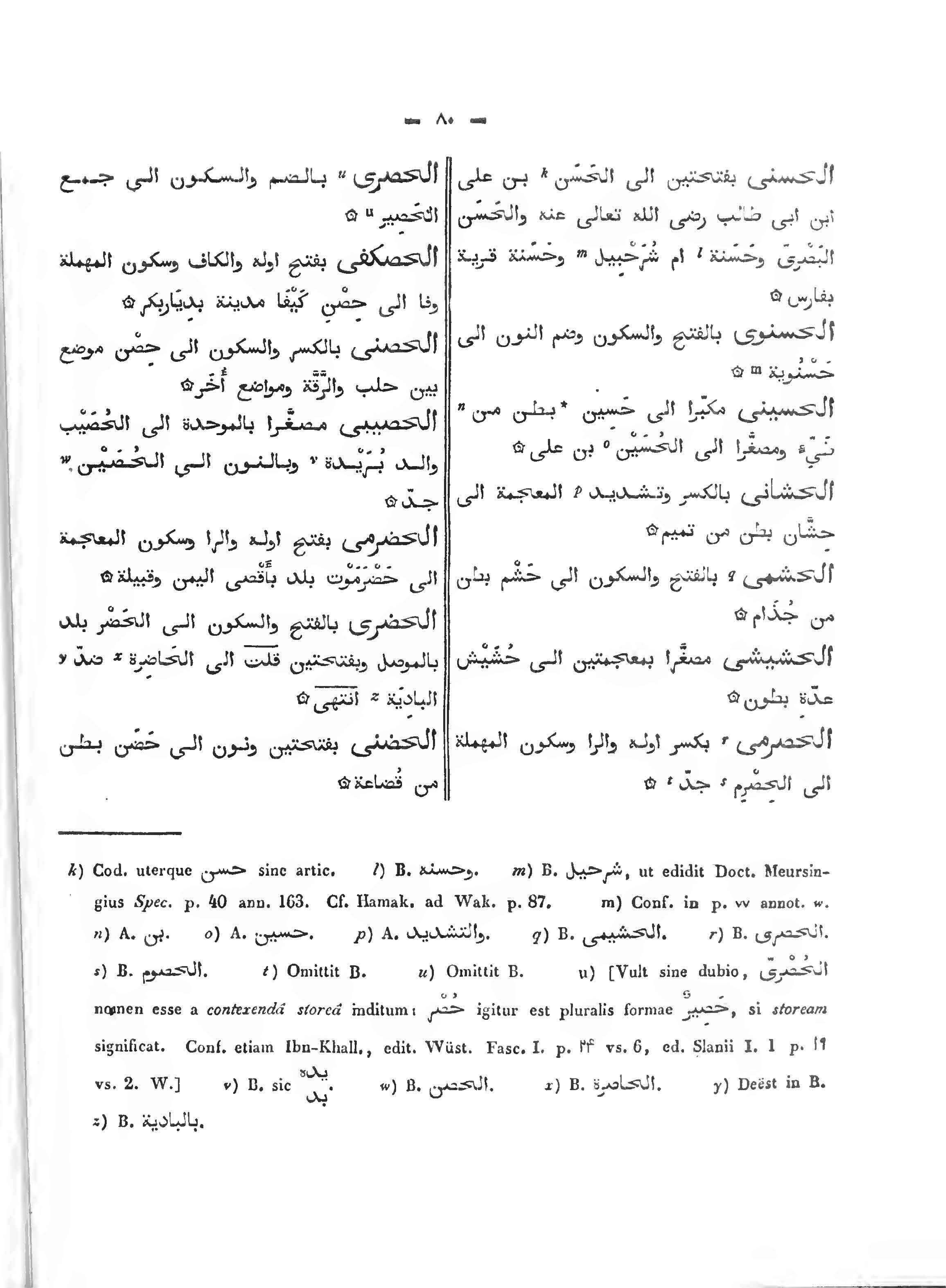 الحسني: بفتحتين إلى الحسن بن علي بن أبي طالب رضي الله تعالى عنه والحسن البصري وحسنة أم شرحبيل وحسنة قرية بفارس.