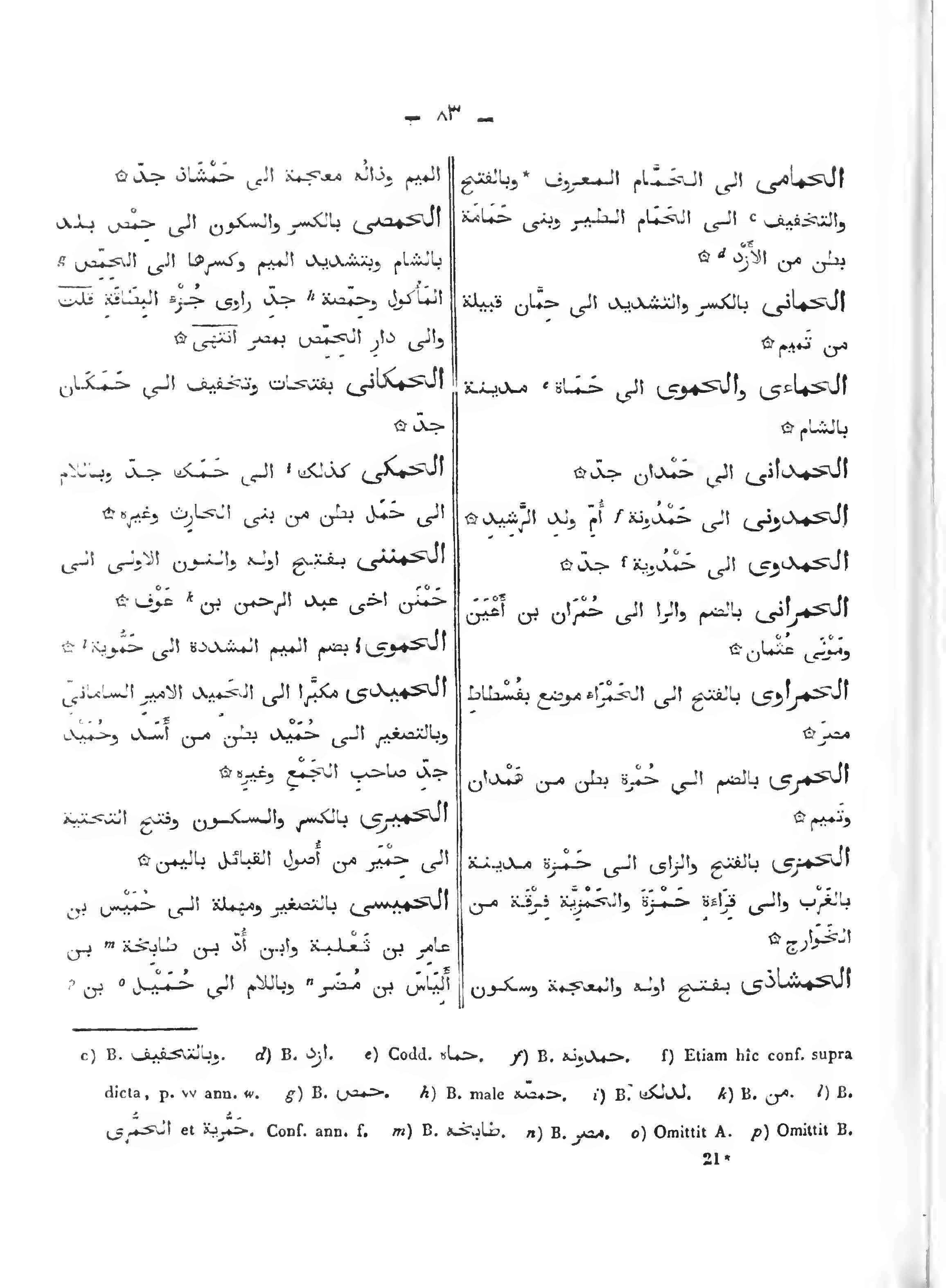 الحميدي: مكبراً إلى الحميد الأمير الساماني وبالتصغير إلى حميد بطن من أسد وحميدٍ جد صاحب الجمع وغيره.