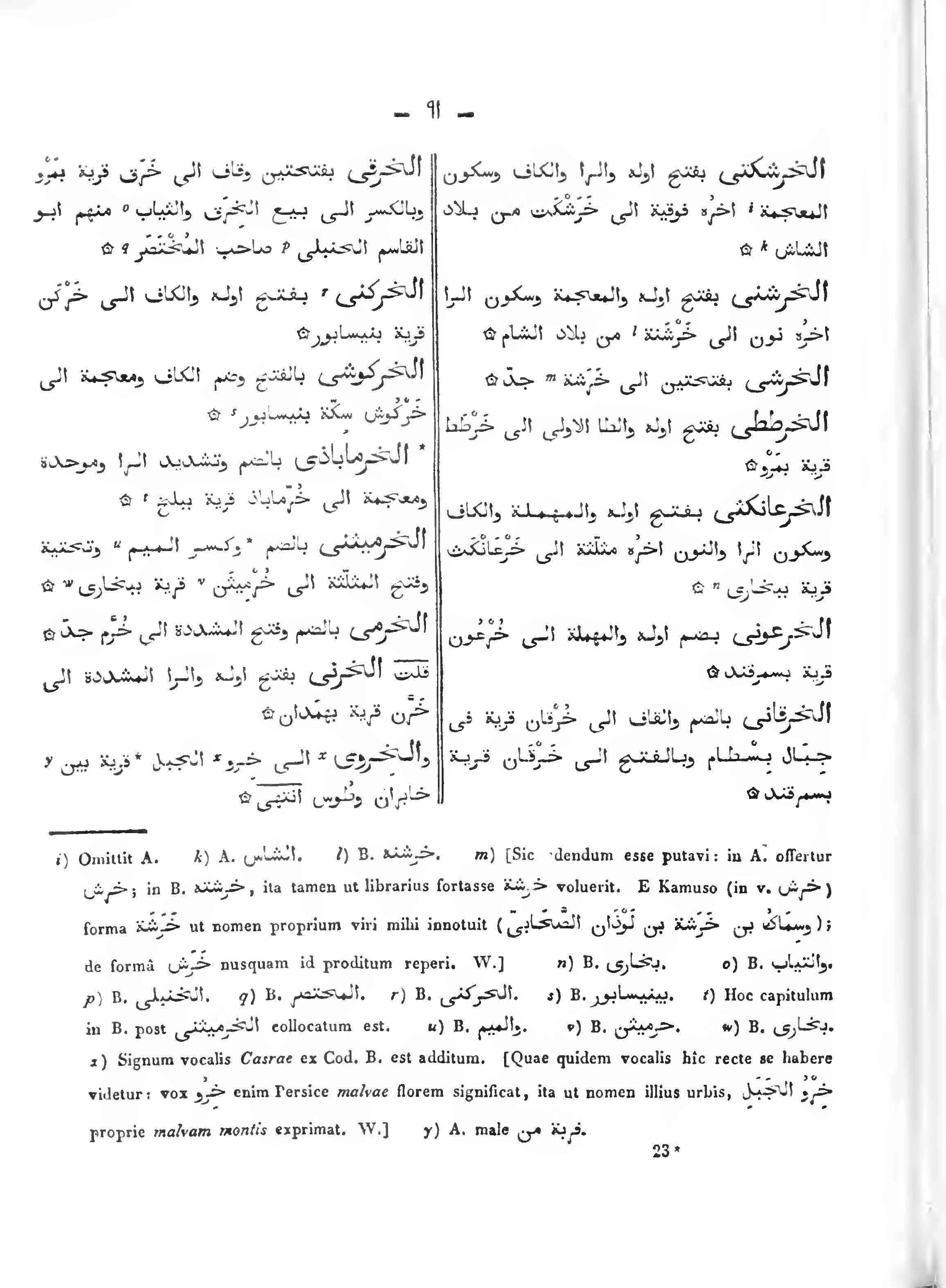 الخركوشي: بالفتح وضم الكاف ومعجمة إلى خَرْكُوش سكة بنيسابور.