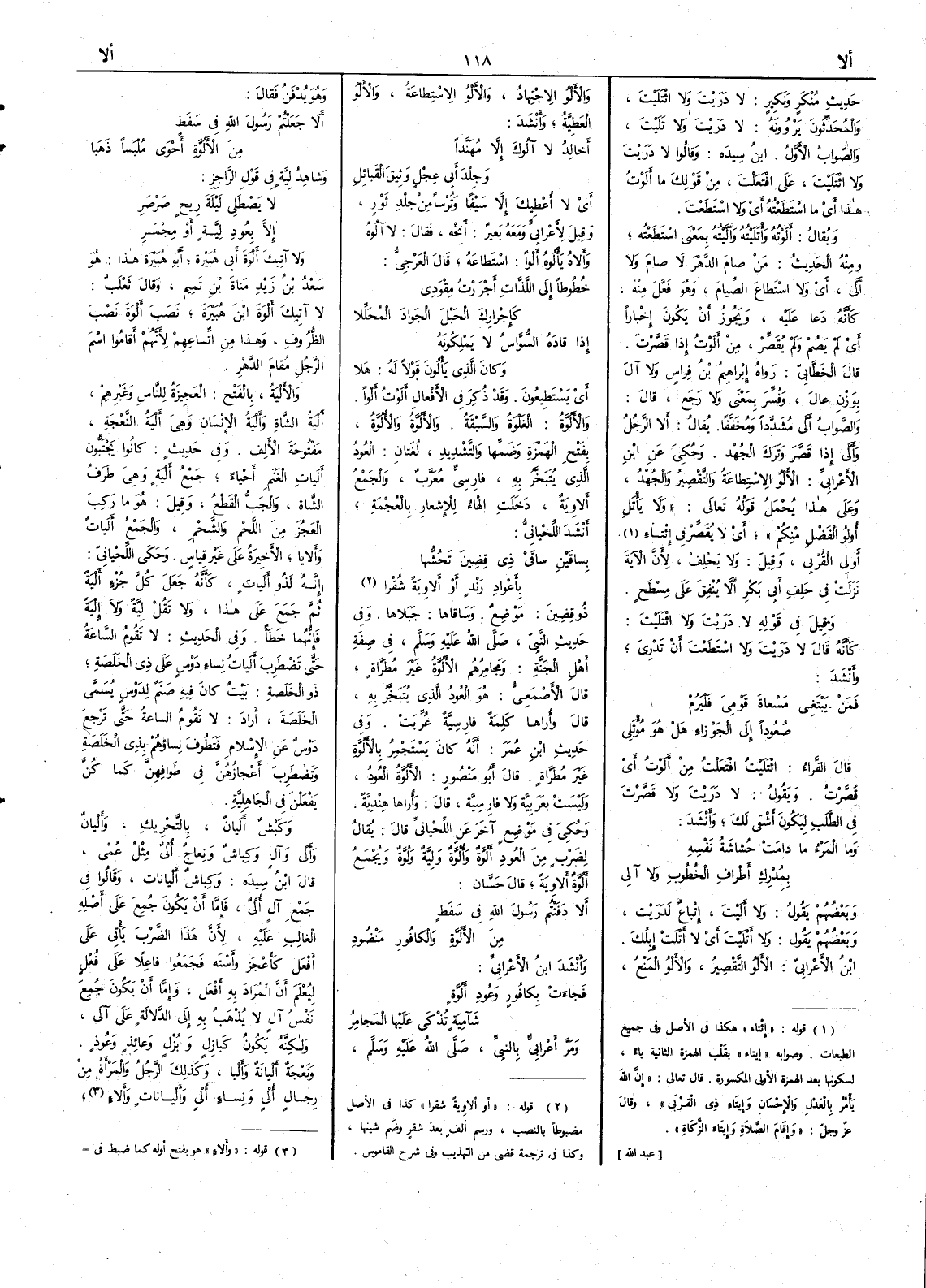ذو قِضين موضع وساقاها جَبَلاها وفي حديث النبي صلى الله عليه وسلَّم في صفة أَهل الجنة ومَجامِرُهم الأَلُوَّة غير مُطَرَّاة قال الأَصمعي هو العُود الذي يُتَبَخَّر به قال وأُراها كلمة فارسية عُرِّبت وفي حديث ابن عمر أَنه كان يَسْتَجمر بالأَلُوَّة غيرَ مُطَرَّاة قال أَبو منصور الأَلُوَّة العود وليست بعربية ولا فارسية قال وأُراها هندية وحكي في موضع آخر عن اللحياني قال يقال لضرب من العُود أَلُوَّة وأُلُوَّةٌ ولِيَّة ولُوَّة ويجمع أَلُوَّةٌ أَلاوِيَةً قال حسان أَلا دَفَنْتُم رسولَ اللهِ في سَفَطٍ من الأَلُوَّة والكافُورِ مَنْضُودِ وأَنشد ابن الأَعرابي فجاءتْ بِكافورٍ وعُود أَلُوَّةٍ شَآمِيَة تُذْكى عليها المَجامِرُ ومَرَّ أَعرابي بالنبي صلى الله عليه وسلم وهو يُدْفَن فقال أَلا جَعَلْتُم رسولَ اللهِ في سَفَطٍ من الأَلُوَّةِ أَحْوى مُلْبَساً ذَهَبا وشاهد لِيَّة في قول الراجز لا يَصْطَلي لَيْلَةَ رِيح صَرْصَرٍ إلاَّ بِعُود لِيَّةٍ أَو مِجْمَر ولا آتيك أَلْوَة أَبي هُبَيْرة أَبو هُبَيْرَة هذا هو سعد بن زيد مَناة بن تميم وقال ثعلب لا آتيك أَلْوَةَ بنَ هُبيرة نَصبَ أَلْوَة نَصْبَ الظروف وهذا من اتساعهم لأَنهم أَقاموا اسم الرجل مُقام الدَّهر والأَلْىة بالفتح العَجِيزة للناس وغيرهم أَلْيَة الشاة وأَلْية الإنسان وهي أَلْية النعجة مفتوحة الأَلف في حديث كانوا يَجْتَبُّون أَلَياتِ الغَنَم أَحياءً جمع أَلْية وهي طَرَف الشاة والجَبُّ القطع وقيل هو ما رَكِبَ العَجُزَ من اللحم والشحم والجمع أَلَيات وأَلايا الأَخيرة على غير قياس وحكى اللحياني إنَّه لذُو أَلَياتٍ كأَنه جعل كل جزء أَلْيةً ثم جمع على هذا ولا تقل لِيَّة ولا إلْية فإنهما خطأٌ وفي الحديث لا تقومُ الساعةُ حتى تَضْطرِبَ أَلَياتُ نِساء دَوْسٍ على ذي الخَلَصة ذو الخَلَصَة بيتٌ كان فيه صَنَمٌ لدَوْسٍ يسمى الخَلَصة أَراد لا تقوم الساعة حتى ترجع دَوْسٌ عن الإسلام فَتَطُوفَ نساؤهم بذي الخَلَصة وتَضْطَرِبَ أَعجازُهُنَّ في طوافهن كما كُنَّ يفعلن في الجاهلية وكَبْشٌ أَلَيان بالتحريك وأَلْيان وأَلىً وآلٍ وكباشٌ ونِعاجٌ أُلْيٌ مثل عُمْي قال ابن سيده وكِباش أَلْيانات وقالوا في جمع آلٍ أُلْيٌ فإما أَن يكون جُمِع على أَصله الغالب عليه لأَن هذا الضرب يأْتي على أَفْعَل كأَعْجَز وأَسْته فجمعوا فاعلاً على فُعْلٍ ليعلم أَن المراد به أَفْعَل وإمّا أَن يكون جُمِع نفس آلٍ لا يُذْهَب به إلى الدلالة على آلَى ولكنه يكون كبازِلٍ وبُزْلٍ وعائذٍ وعُوذٍ ونعجة أَلْيانةٌ وأَلْيا وكذلك الرجل والمرأَة مِنْ رِجالٍ أُلْيٍ ونساء أُلْيٍ وأَلْيانات وأَلاءٍ