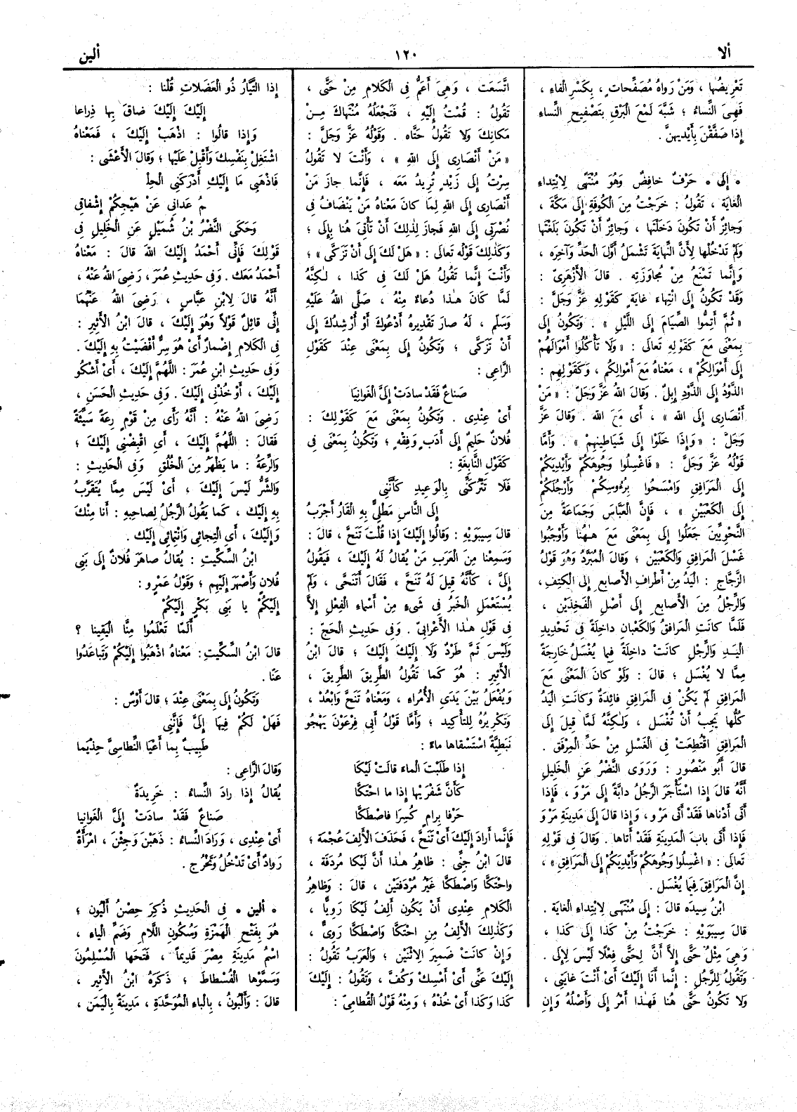 ( إلى ) حرف خافض وهو مُنْتَهىً لابتداء الغاية تقول خرجت من الكوفة إلى مكة وجائز أَن تكون دخلتها وجائز أَن تكون بلغتها ولم تدْخُلْها لأَنّ النهاية تشمل أَول الحدّ وآخره وإنما تمنع من مجاوزته قال الأزهري وقد تكون إلى انتهاء غايةٍ كقوله عز وجل ثم أَتِمُّوا الصِّيامَ إلى الليلِ وتكون إلى بمعنى مع كقوله تعالى ولا تأْكلوا أَموالهم إلى أَموالِكم معناه مع أَموالِكم وكقولهم الذَّوْدُ إلى الذَّوْدِ إبِلٌ وقال الله عز وجل مَن أَنصاري إلى الله أَي مع اللهِ وقال عز وجل وإذا خَلَوْا إلى شياطينهم وأَما قوله عز وجل فاغسِلوا وجوهَكُم وأَيَدِيَكم إلى المرافِق وامْسَحُوا برُؤوسكم وأَرْجُلِكم إلى الكعبينِ فإن العباس وجماعة من النحويين جعلوا إلى بمعنى مع ههنا وأَوجبوا غسْلَ المَرافِق والكعبين وقال المبرد وهو قول الزجاج اليَدُ من أَطراف الأَصابع إلى الكتف والرِّجل من الأَصابع إلى أَصل الفخذين فلما كانت المَرافِق والكَعْبانِ داخلة في تحديد اليدِ والرِّجْل كانت داخِلةً فيما يُغْسَلُ وخارِجَةً مما لا يُغسل قال ولو كان المعنى مع المَرافِق لم يكن في المَرافِق فائدة وكانت اليد كلها يجب أَن تُغسل ولكنه لَمَّا قيل إلى المَرافِق اقتُطِعَتْ في الغَسْل من حدّ المِرْفَق قال أَبو منصور وروى النضر عن الخليل أَنه قال إذا اسْتأْجرَ الرجلُ دابَّةً إلى مَرْوَ فإذا أَتى أَدناها فقد أَتى مَرْوَ وإذا قال إلى مدينة مرو فإذا أَتى باب المدينة فقد أَتاها وقال في قوله تعالى اغسلوا وجوهكم وأَيديكم إلى المرافق إنَّ المرافق فيما يغسل ابن سيده قال إلى مُنتهى لابتداء الغاية قال سيبويه خرجت من كذا إلى كذا وهي مِثْلُ حتى إلاَّ أَن لحتى فِعلاً ليس لإلى ونقول للرجل إنما أَنا إليك أَي أَنت غايتي ولا تكونُ حتى هنا فهذا أَمْرُ إلى وأَصْلُه وإن اتَّسَعَتْ وهي أَعمُّ في الكلام من حتى تقول قُمْتُ إليه فتجعله مُنْتَهاك من مكانك ولا تقول حَتَّاه وقوله عز وجل مَن أَنصاري إلى الله وأَنت لا تقول سِرْتُ إلى زيد تريد معه فإنما جاز مَن أَنصاري إلى الله لما كان معناه مَن ينضافُ في نُصرتي إلى الله فجاز لذلك أَن تأْتي هنا بإلى وكذلك قوله تعالى هل لَكَ إلى أَن تَزَكَّى وأَنت إنما تقول هل لك في كذا ولكنه لما كان هذا دعاء منه صلى الله عليه وسلم له صار تقديره أَدعوك أَو أُرْشِدُكَ إلى أَن تزكَّى وتكون إلى بمعنى عند كقول الراعي صَناعٌ فقد سادَتْ إليَّ الغوانِيا أَي عندي وتكون بمعنى مع كقولك فلانٌ حليمٌ إلى أَدبٍ وفقْهٍ وتكون بمعنى في كقول النابغة فلا تَتْرُكَنِّي بالوَعِيدِ كأَنَّني إلى الناسِ مَطْلِيٌّ به القارُ أَجْرَبُ قال سيبويه وقالوا إلَيْكَ إذا قلت تَنَحَّ قال وسمعنا من العرَب مَن يقال له إلَيْكَ فيقول إلي كأَنه قيل له تَنَحَّ فقال أَتَنَحَّى ولم يُستعمل الخبر في شيء من أَسماء الفعل إلاَّ في قول هذا الأَعرابي وفي حديث الحج وليس ثَمَّ طَرْدٌ ولا إلَيْكَ إلَيْكَ قال ابن الأثير هو كما تقول الطريقَ الطريقَ ويُفْعَل بين يدي الأُمراء ومعناه تَنَحَّ وابْعُدْ وتكريره للتأْكيد وأَما قول أَبي فرعون يهجو نبطية استسقاها ماء إذا طَلَبْتَ الماء قالَتْ لَيْكا كأَنَّ شَفْرَيْها إذا ما احْتَكَّا حَرْفا بِرامٍ كُسِرَا فاصْطَكَّا فإنما أَراد إلَيْكَ أَي تَنَحَّ فحذف الأَلف عجمة قال ابن جني ظاهر هذا أَنَّ لَيْكا مُرْدَفة واحْتَكّا واصْطَكا غير مُرْدَفَتَين قال وظاهر الكلام عندي أَن يكون أَلف ليكا رويًّا وكذلك الأَلف من احتكا واصطكا رَوِيٌّ وإن كانت ضمير الاثنين والعرب تقول إلَيْكَ عني أَي أَمْسِكْ وكُفَّ وتقول إليكَ كذا وكذا أَي خُذْه ومنه قول القُطامي إذا التَّيَّارُ ذو العضلاتِ قُلْنا إلَيْك إلَيْك ضاقَ بها ذِراعا وإذا قالوا اذْهَبْ إلَيْكَ فمعناه اشْتَغِلْ بنَفْسك وأَقْبِلْ عليها وقال الأَعشى فاذْهَبي ما إلَيْكِ أَدْرَكَنِي الحِلْ مُ عَداني عن هَيْجِكُمْ إشْفاقي وحكى النضر بن شميل عن الخليل في قولك فإني أَحْمَد