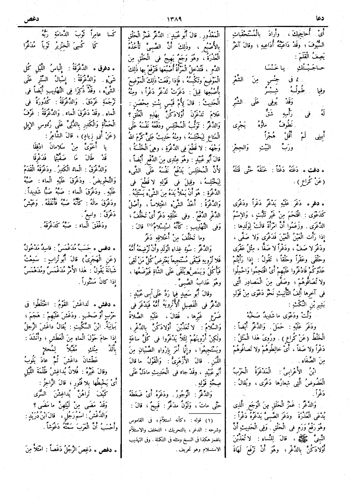 أَي أُحاجِيكَ وأَراد بالمُسْتَحْقَباتِ السُّيوفَ وقد دَاعَيْتُه أُدَاعِيهِ وقال آخر يصف القَلَم حاجَيْتُك يا خَنْسا ءُ في جِنْسٍ من الشِّعْرِ وفيما طُولُه شِبْرٌ وقد يُوفِي على الشِّبْرِ له في رَأْسِهِ شَقٌّ نَطُوفٌ ماؤُه يَجْرِي أَبِيِني لَمْ أَقُلْ هُجْراً ورَبِّ البَيْتِ والحِجْرِ ( دغت ) دَغَتَه دَغْتاً حَنَقَه حتى قتله عن كراع