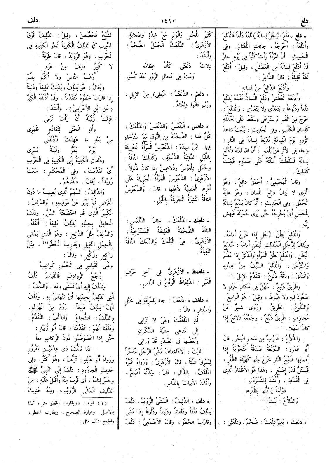 ( دلغف ) ادْلَغَفَّ جاء للسَّرِقة في خَتْلٍ واسْتِتارٍ قال قَدِ ادْلَغَفَّتْ وهي لا تَرَاني إلى مَتاعِي مِشْيَةَ السَّكْرانِ وبُغْضُها في الصدرِ قد وَراني الليث الادْلِغْفافُ مشي الرجلِ مُتَسَتِّراً لِيَسْرق شيئاً قال الأَزهري ورواه غيره اذْلَغَفَّ بالذال قال وكأَنه أَصح وأَنشد الأَبيات بالذال