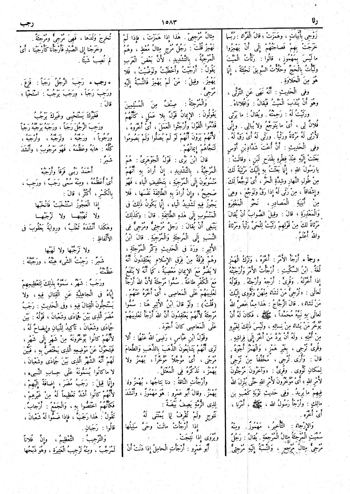 ( رجأ ) أَرْجَأَ الأَمرَ أَخَّرَه وتركُ الهَمْز لغة ابن السكيت أَرْجَأْت الأَمْرَ وأَرْجَيْتُه إِذا أَخَّرْتَه وقُرئَ أَرْجِهْ وأَرْجِئْهُ وقوله تعالى تُرْجِئُ مَنْ تَشاءُ منهنّ وتُؤْوِي إِلَيْكَ مَن تَشاءُ قال [ ص 84 ] الزجاج هذا مما خَصَّ اللّه تعالى به نَبِيَّه محمداً صلى اللّه عليه وسلم فكان له أَن يُؤَخِّرَ مَنْ يَشاءُ مِن نِسائه وليس ذلك لغيره من أُمته وله أَن يَرُدَّ مَنْ أَخَّر إِلى فِراشِه وقُرئَ تُرْجي بغير همز والهَمزُ أَجْودُ قال وأُرَى تُرجِي مخففاً من تُرْجِئُ لِمَكان تُؤْوِي وقُرئَ وآخَرُون مُرْجَؤُون لأَمْرِ اللّه أَي مُؤَخَّرون لأَمر اللّه حتى يُنْزِلَ اللّهُ فيهم ما يُرِيد وفي حديث تَوْبةِ كَعْب بن مالك وأَرْجَأَ رسولُ اللّهِ صلى اللّه عليه وسلم أَمْرَنا أَي أَخَّرَه والإِرْجاءُ التأْخير مهموز ومنه سميت المُرْجِئةُ مثال المُرْجِعةِ يقال رَجلٌ مُرْجِئٌ مثال مُرْجِعٍ والنسبة إِليه مُرْجِئِيٌّ مثال مُرْجِعِيٍّ هذا إِذا همزت فإِذا لم تهمز قلت رَجلٌ مُرْجٍ مثال مُعْطٍ وهم المُرْجِيَّةُ بالتشديد لأَن بعض العرب يقول أَرْجَيْتُ وأَخْطَيْت وتَوَضَّيْتُ فلا يَهْمِز وقيل مَن لم يَهمز فالنسبة إِليه مُرْجِيٌّ والمُرْجِئةُ صِنْفٌ من المسلمين يقولون الإِيمانُ قَوْلٌ بلا عَمَل كأَنهم قدّمُوا القَوْلَ وأَرْجَؤُوا العمل أَي أَخَّروه لأَنهم يرون أَنهم لو لم يُصلُّوا ولم يَصُومُوا لنَجَّاهم إِيمانهم قال ابن بري قول الجوهري هُمُ المُرْجِيَّة بالتشديد إِن أَراد به أَنهم منسوبون إِلى المُرْجِيةِ بتخفيف الياء فهو صحيح وإِن أَراد به الطائفة نفسها فلا يجوز فيه تشديد الياء إِنما يكون ذلك في المنسوب إِلى هذه الطائفة قال وكذلك ينبغي أَن يقال رجلٌ مُرْجِئِيٌّ ومُرْجِيٌّ في النسب إِلى المُرْجئةِ والمُرْجِيةِ قال ابن الأَثير ورد في الحديث ذكر المُرْجِئةِ وهم فِرْقةٌ من فِرَقِ الإِسلام يَعْتقدون أَنه لا يَضُرُّ مع الإِيمان مَعْصِية كما أَنه لا ينفع مع الكفر طاعة سموا مُرْجِئةً لأَنّ اللّهَ أَرْجَأَ تعذيبَهم على المعاصي أَي أَخَّرَه عنهم ( قلت ) ولو قال ابن الأَثير هنا سموا مرجئة لأَنهم يعتقدون أَن اللّه أَرْجَأَ تعذيبهم على المعاصي كان أَجود وقول ابن عباس رضي اللّه عنهما أَلا ترى أَنهم يَتَبايعون الذهبَ بالذهب والطعامَ مُرْجًى أَي مؤَجَّلاً مُؤَخراً يهمز ولا يهمز نذكره في المعتل وأَرْجَأَتِ الناقةُ دنا نِتاجُها يهمز ولا يهمز وقال أَبو عمرو هو مهموز وأَنشد لذي الرُّمَّة يصِفُ بيضة