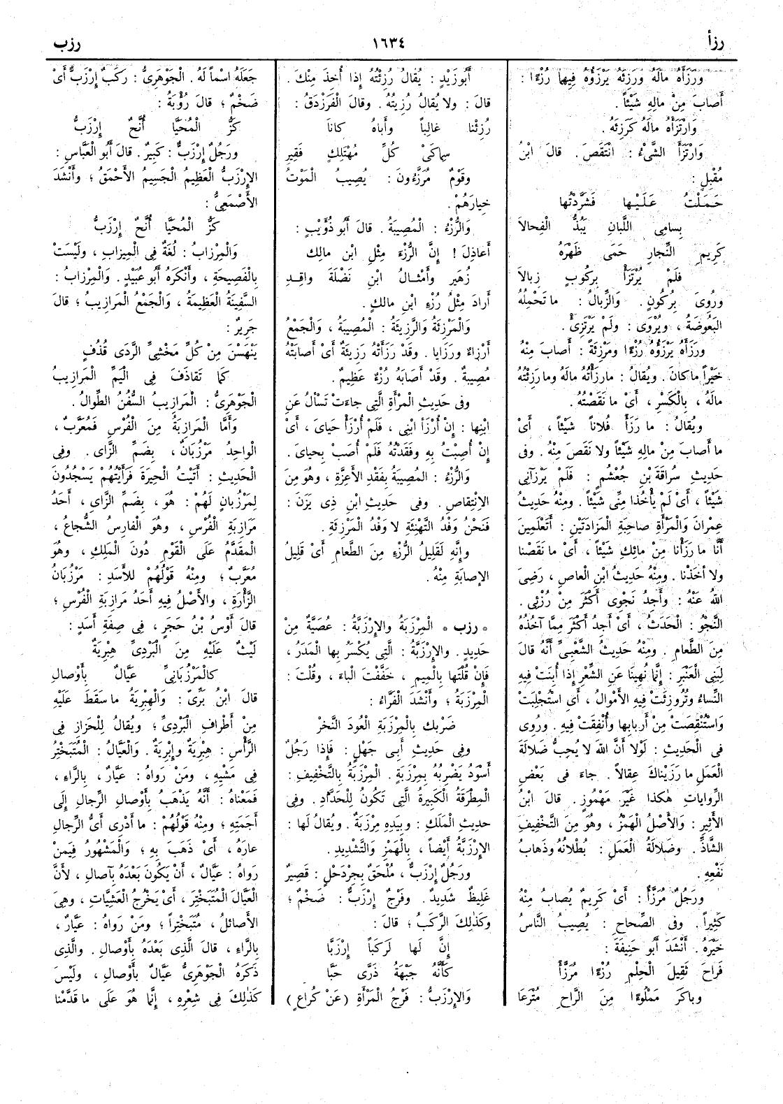 والإِرْزَبُّ فَرْجُ المرأَةِ عن كراع جَعَلَه اسماً له الجوهري رَكَبٌ إِرْزَبٌّ أَي ضَخْمٌ قال رؤْبة كَزّ المُحَيَّا أُنَّح إِرْزَبّ ورجل إِرْزَبٌّ كبيرٌ قال أَبو العباس الإِرْزَبُّ العظيم الجسيمُ الأَحْمَق وأَنشد الأَصمعي كَزّ المُحَيَّا أُنَّح إِرْزَبّ والمِرْزابُ لغة في الميزابِ وليست بالفصيحة وأَنْكَرَه أَبو عبيد والمِرزابُ السفينة العظيمة والجمعُ المرازيبُ قال جرير