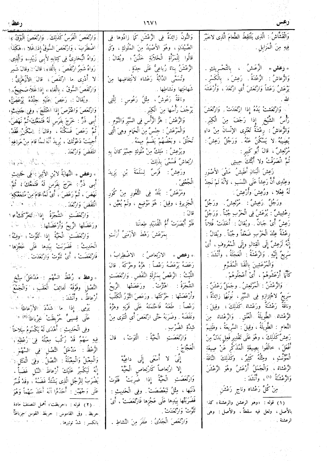 ( رعض ) النهاية لابن الأَثير في حديث أَبي ذر خرج بفرس له فَتَمعَّكَ ثم نَهَضَ ثم رَعَضَ أَي لَمَّا قام من مُتَمَعَّكِه انتَفَضَ وارْتَعَدَ وارْتَعَضَتِ الشجرة إِذا تحرّكت ورَعَضَتْها الريحُ وأَرْعَضَتْها وارْتَعَضَت الحيّة إِذا تَلَوَّت ومنه الحديث فضَربت بيدها على عجُزها فارْتَعَضَتْ أَي تَلَوَّتْ وارْتَعَدَت
